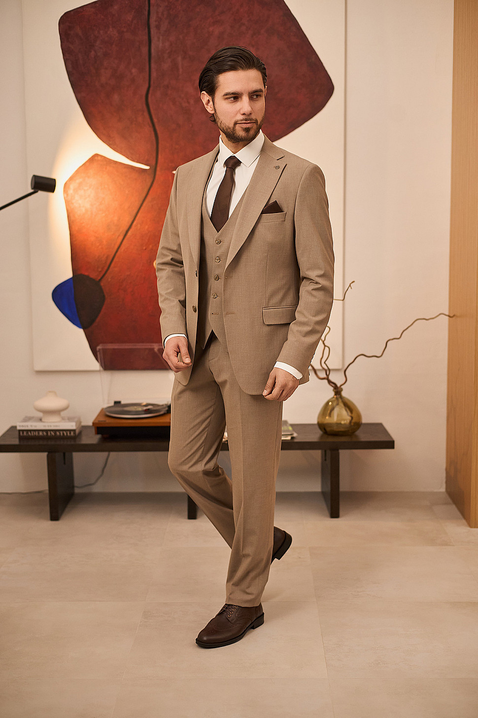 Мужской костюм двойка коричневого цвета в стиле кэжуал