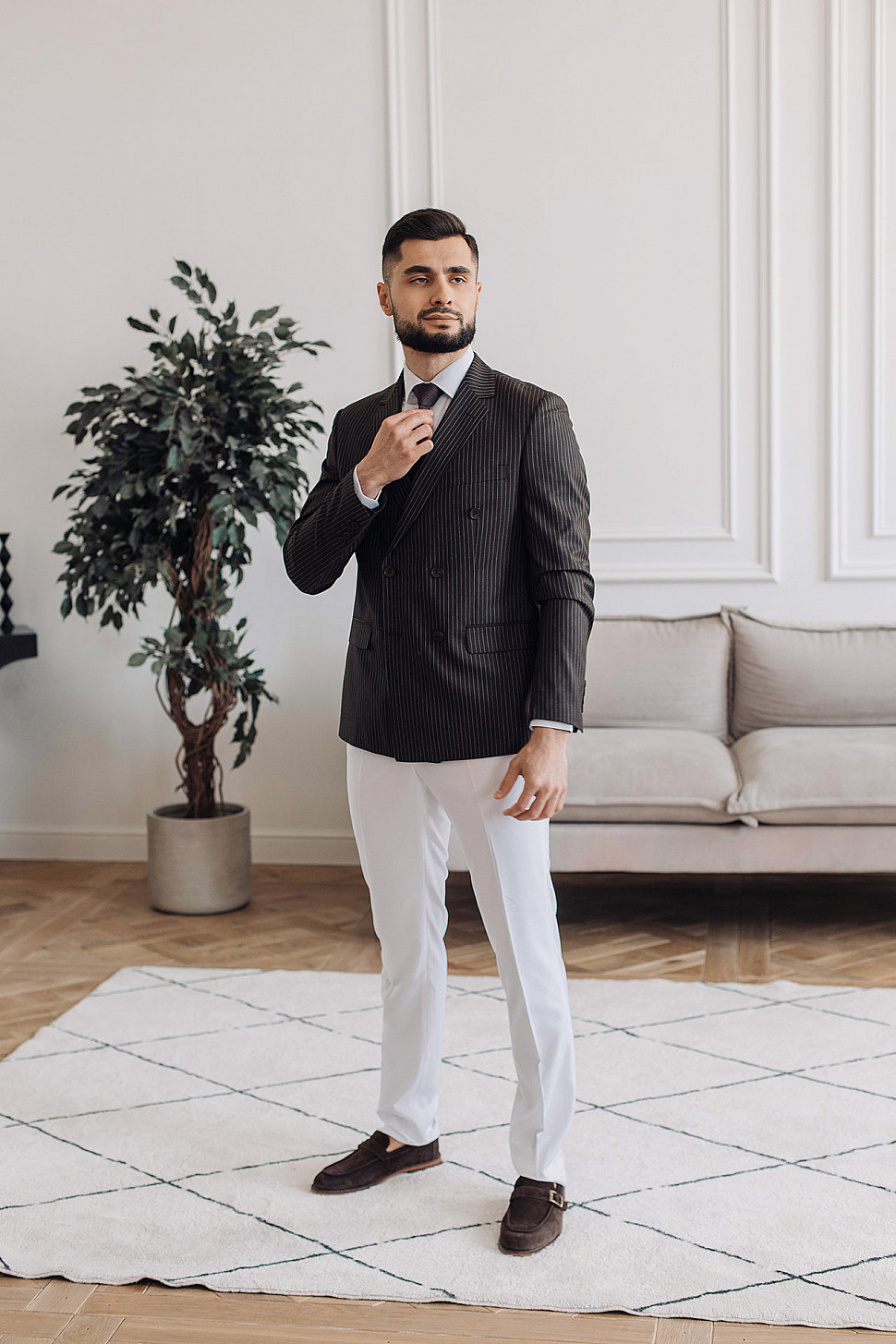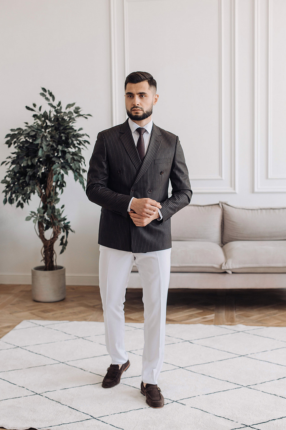 Мужской костюм Коричневого цвета в полоску со змеей
