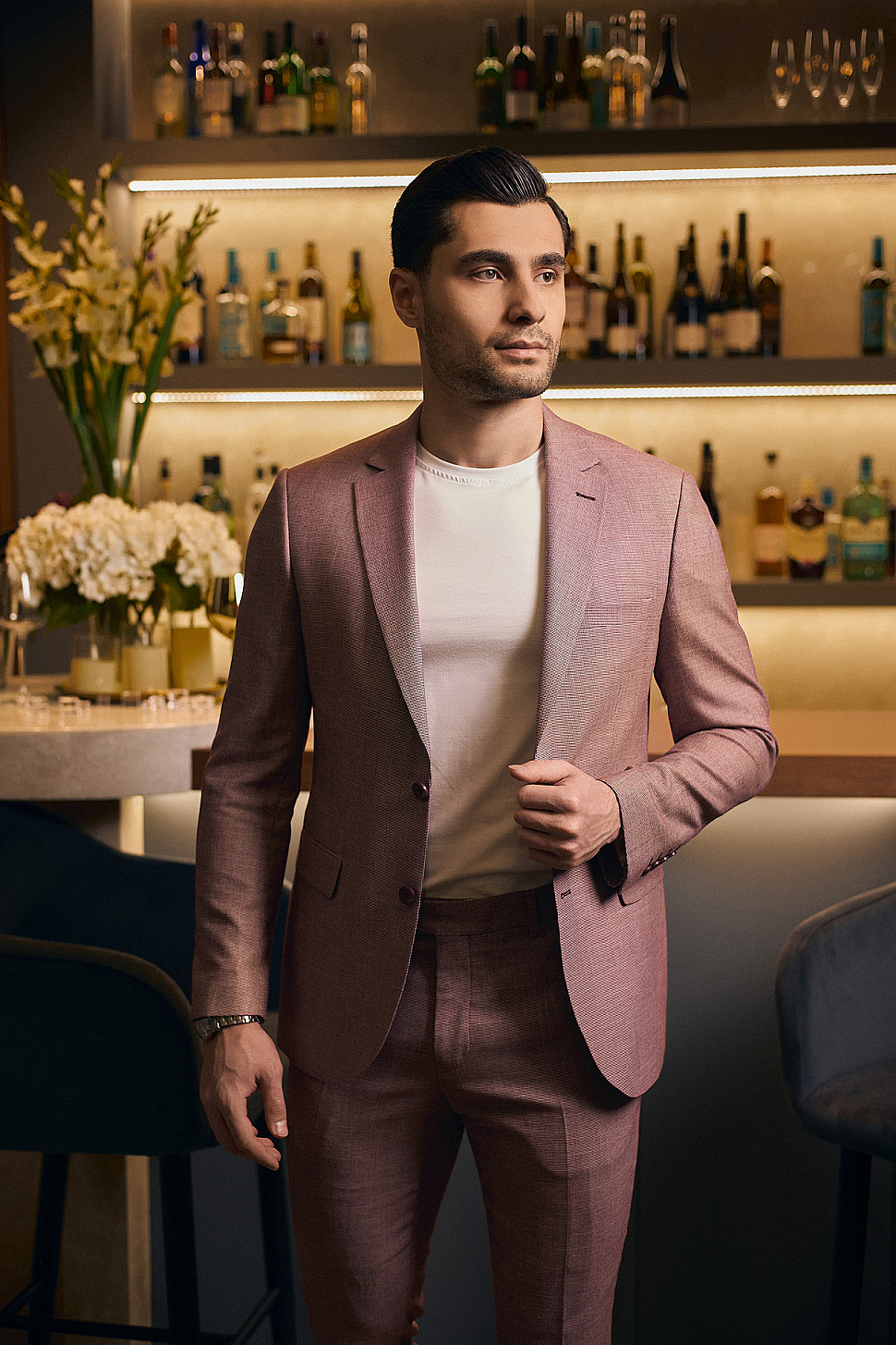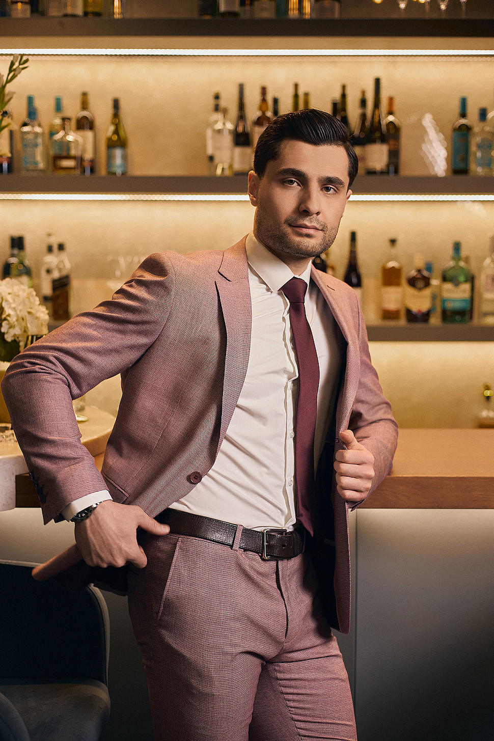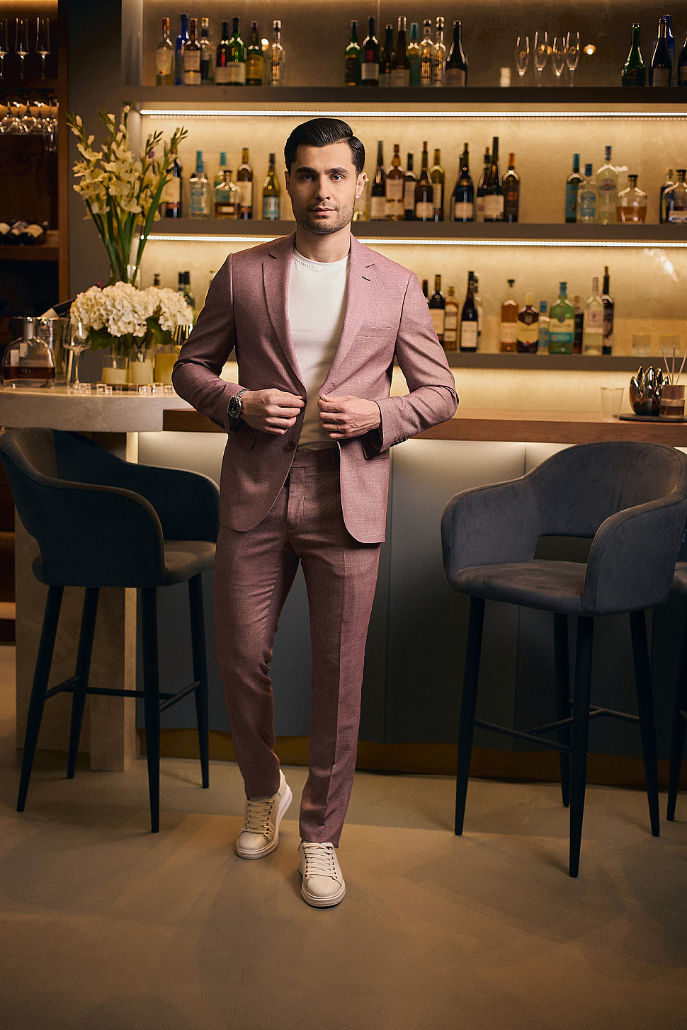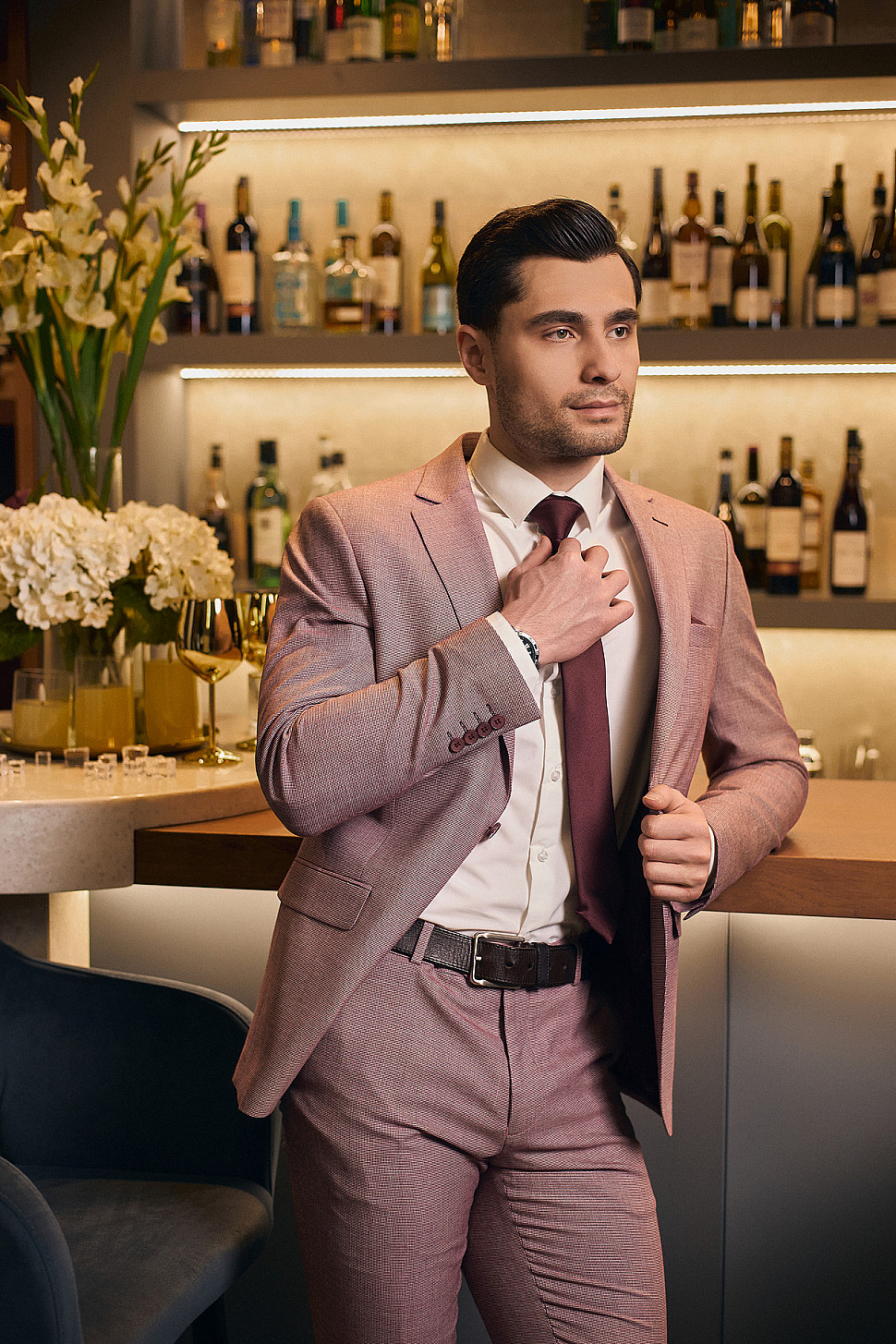 Костюм мужской двойка розовый, повседневный и классический образ