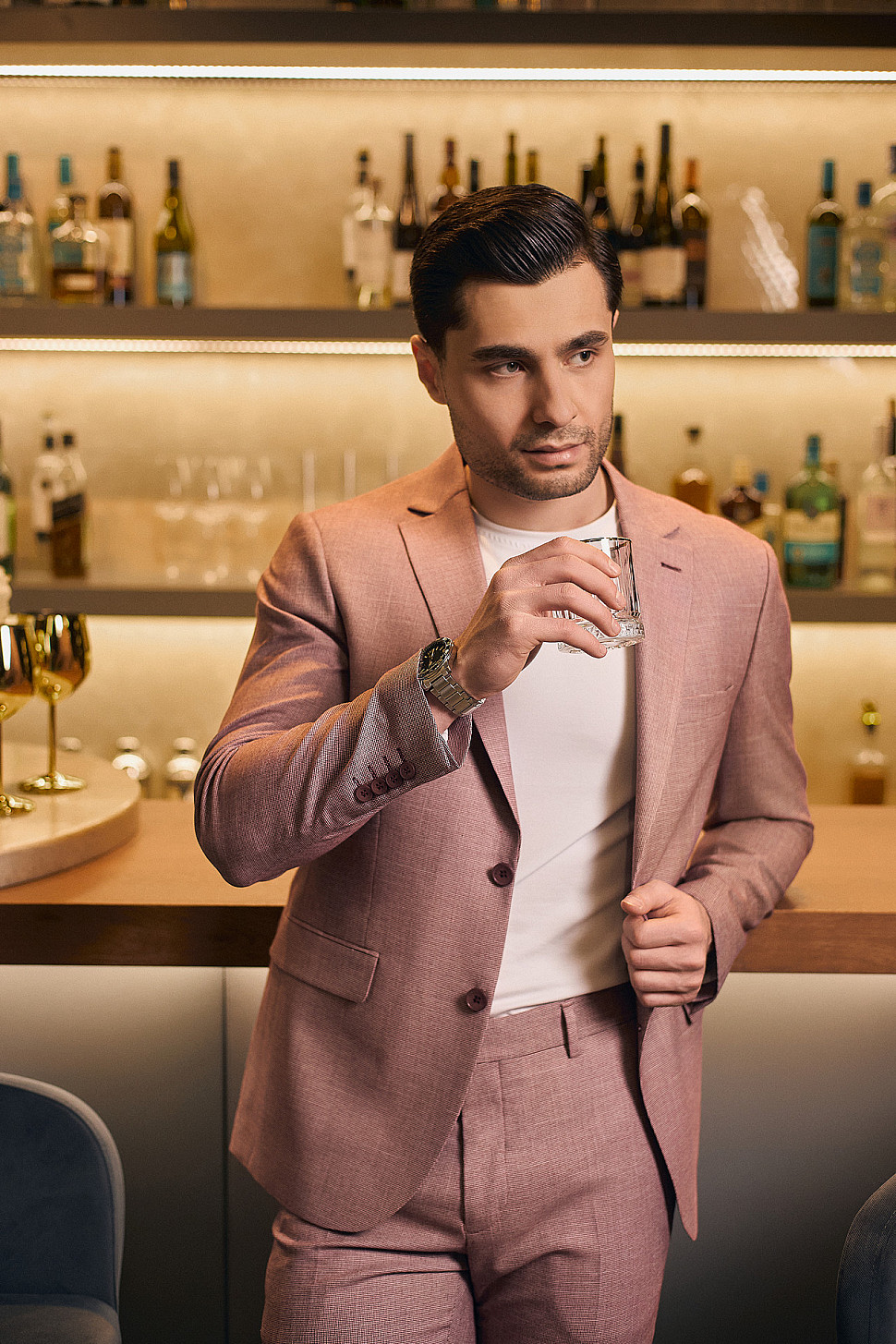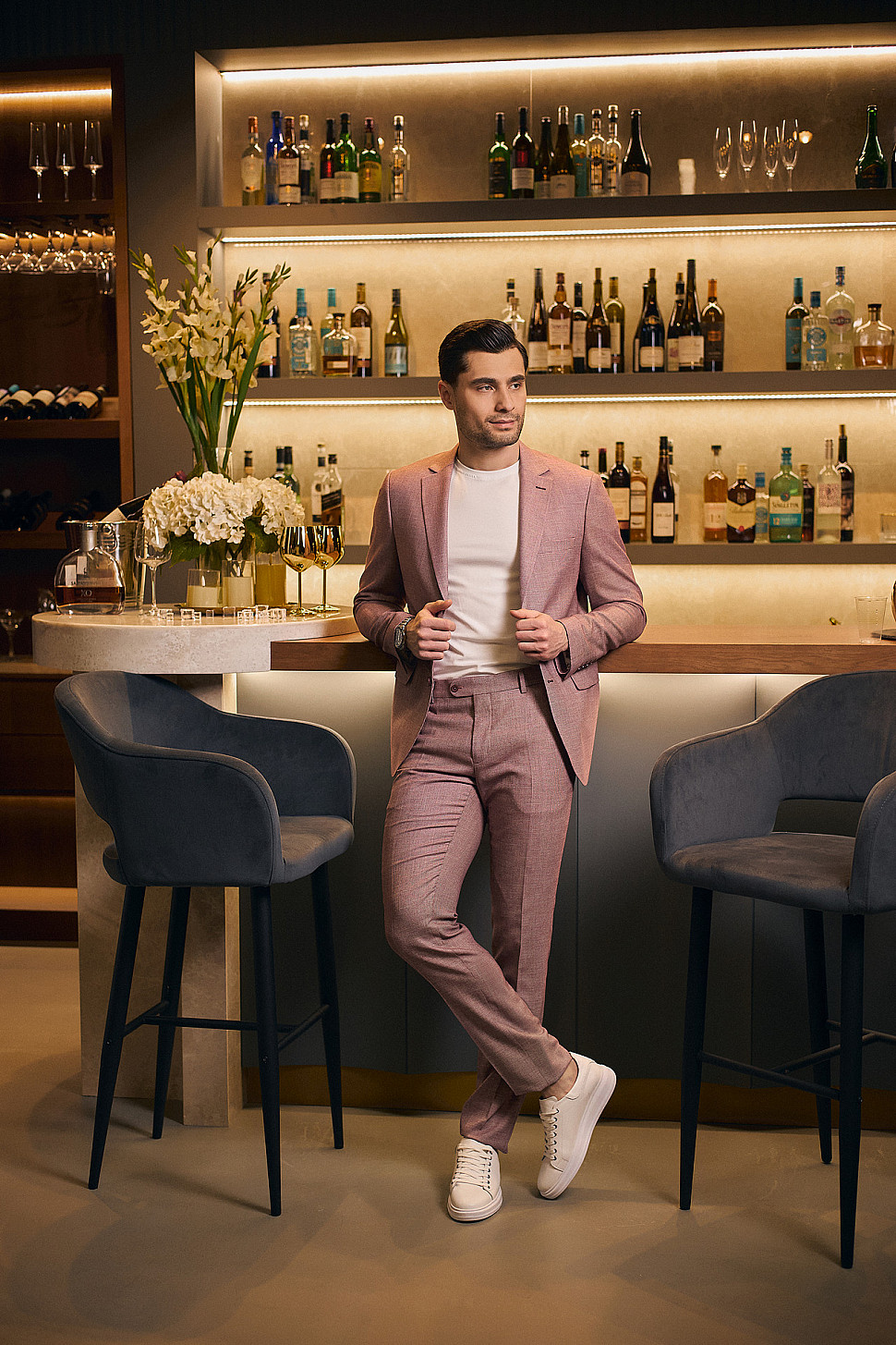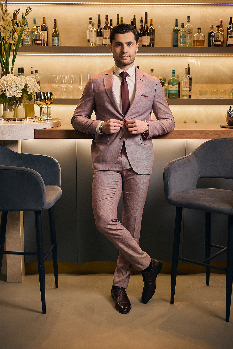 Костюм мужской двойка розовый, повседневный и классический образ