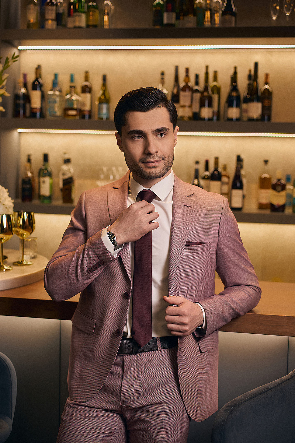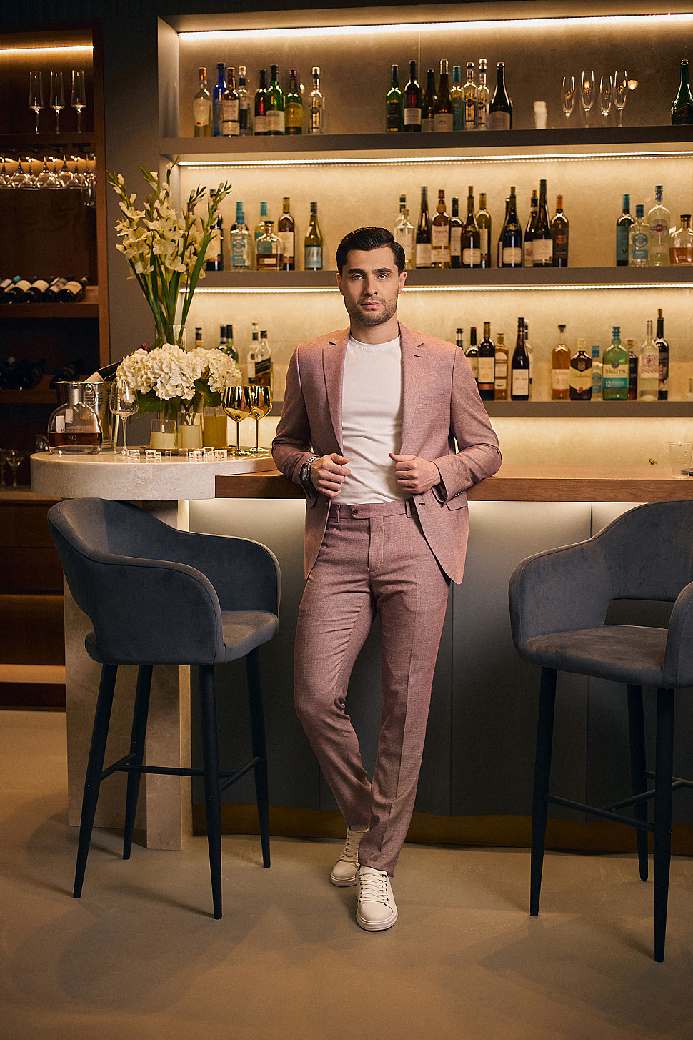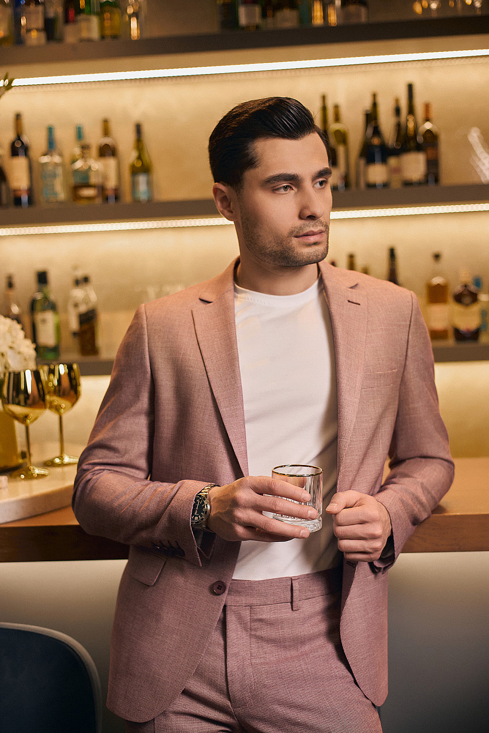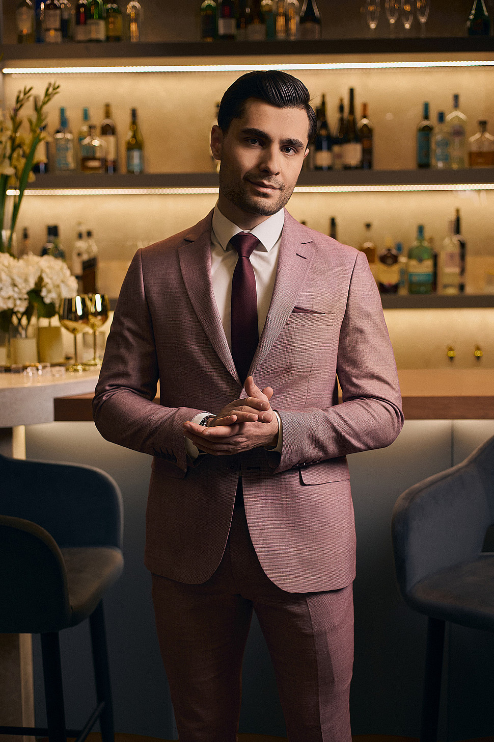 Костюм мужской двойка розовый, повседневный и классический образ