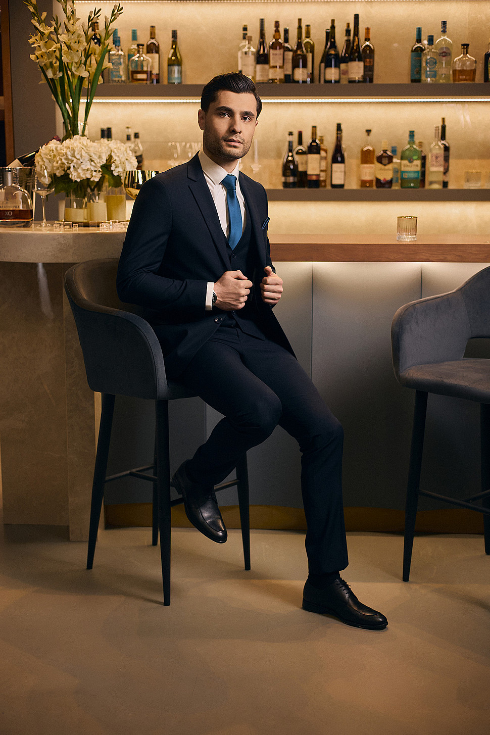 Мужской костюм двойка синего цвета фактурный
