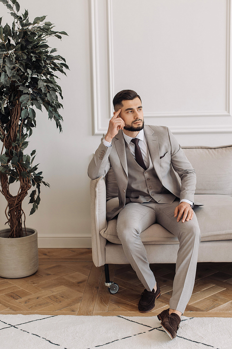 Костюм светло-коричневый двойка в клетку, повседневный и классический образ