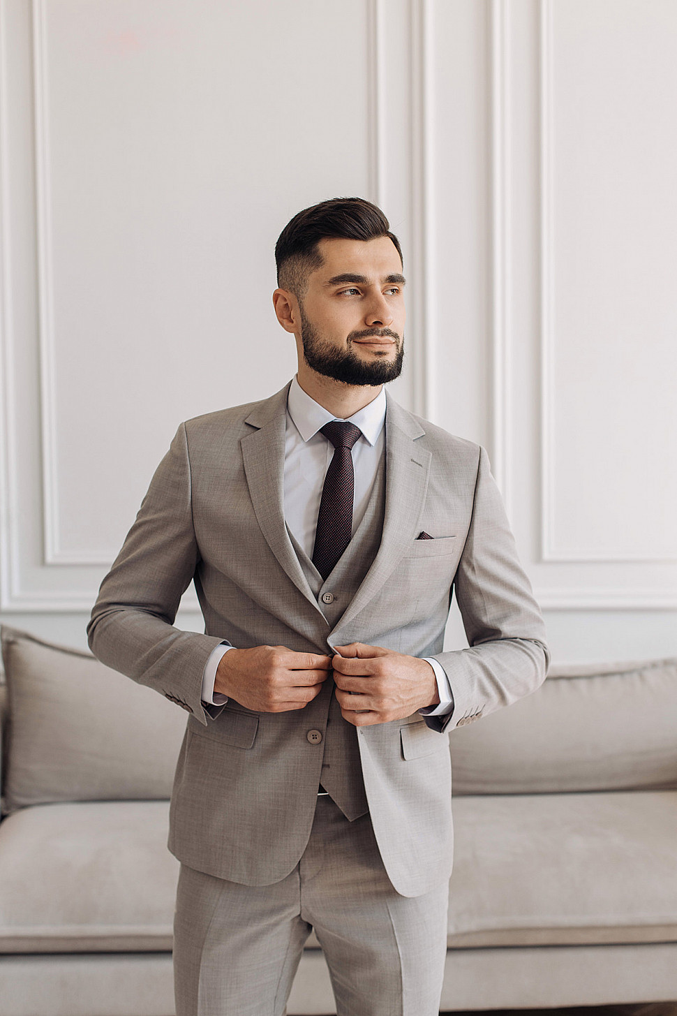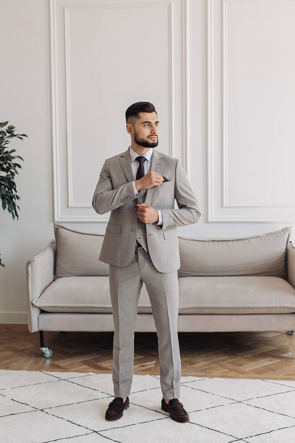 Костюм двойка бежевого цвета, повседневный и классический образ