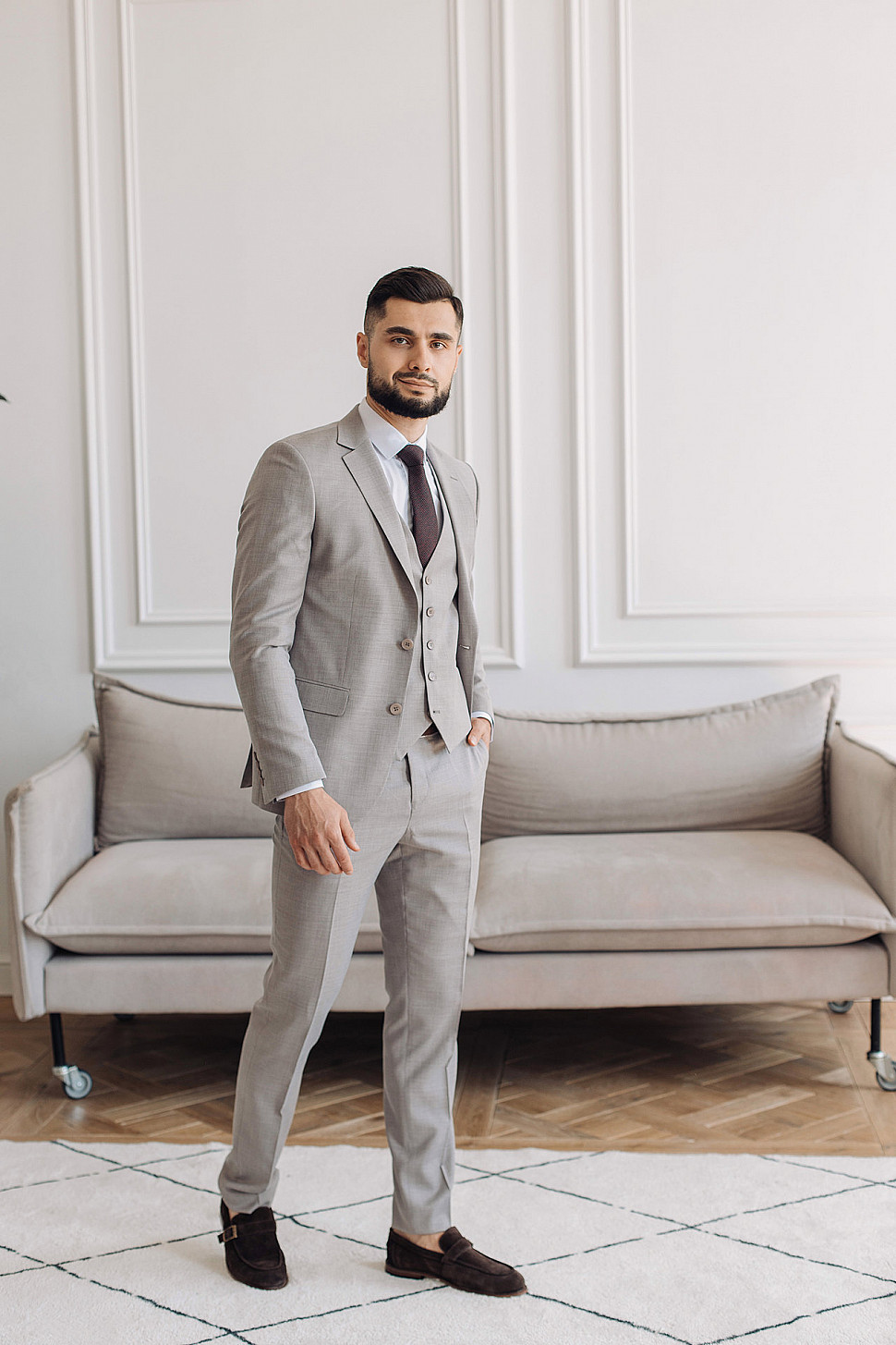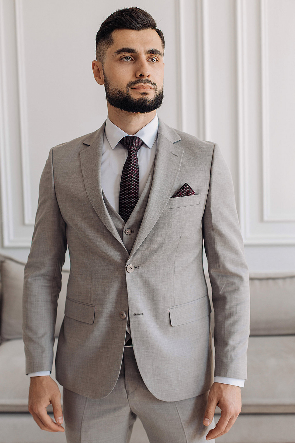 Мужской костюм двойка серого цвета в стиле кэжуал