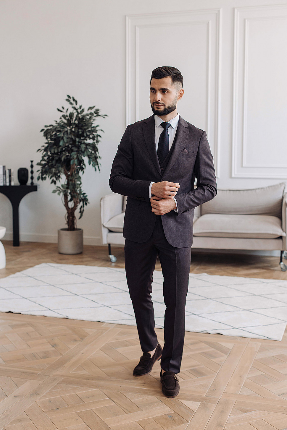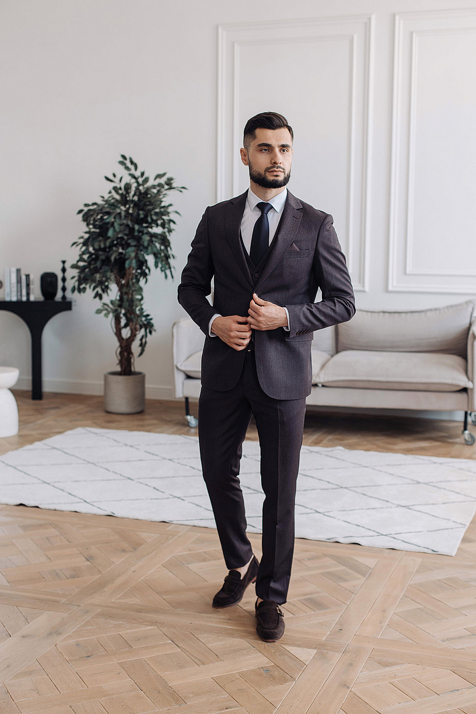 Мужской костюм тройка коричневого цвета текстурный