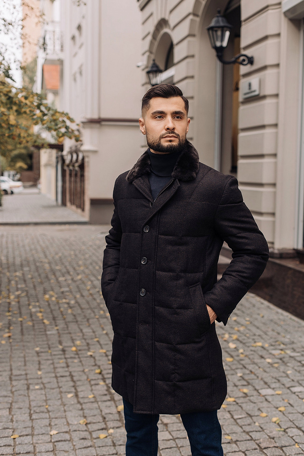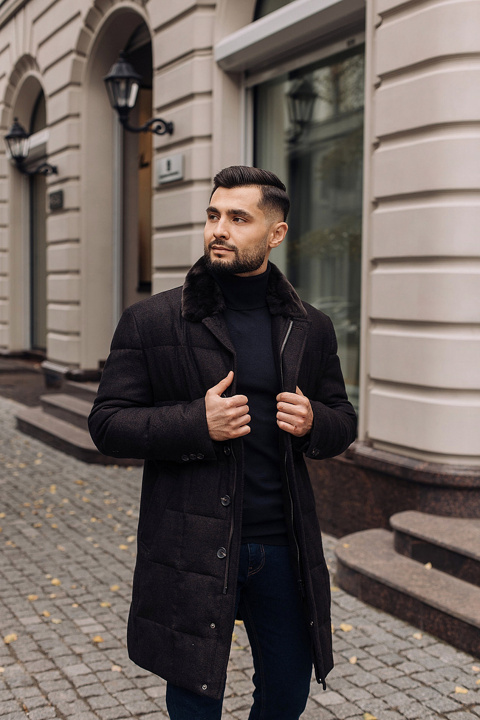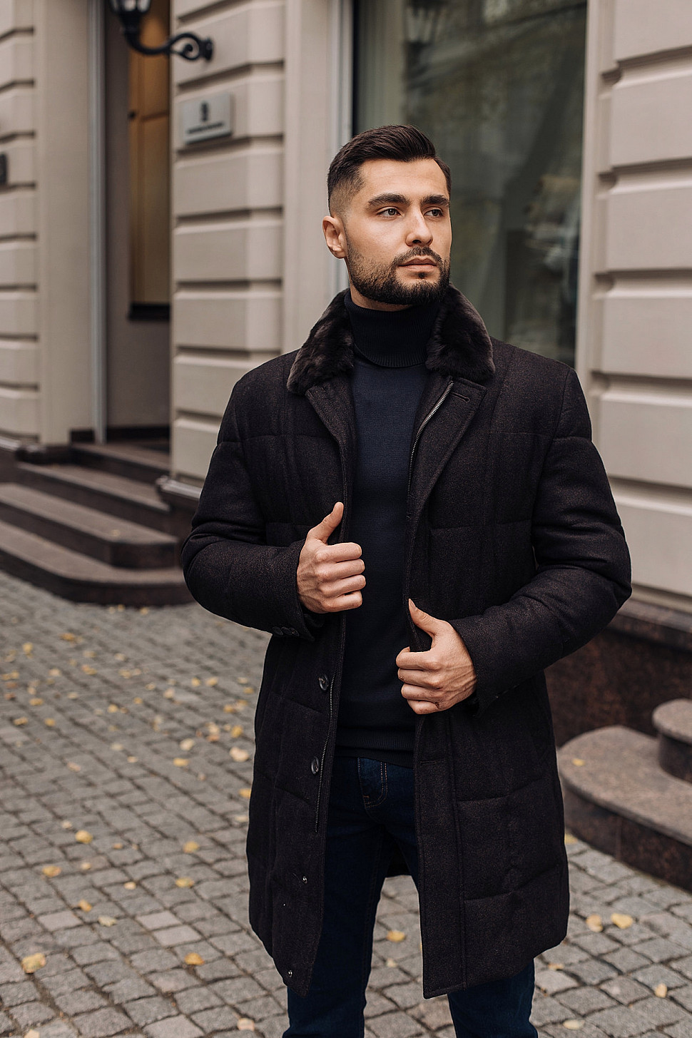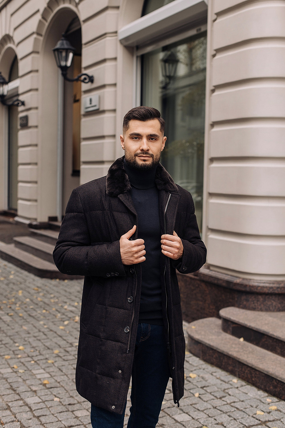 Мужская куртка темно-коричневого цвета с меховым воротником