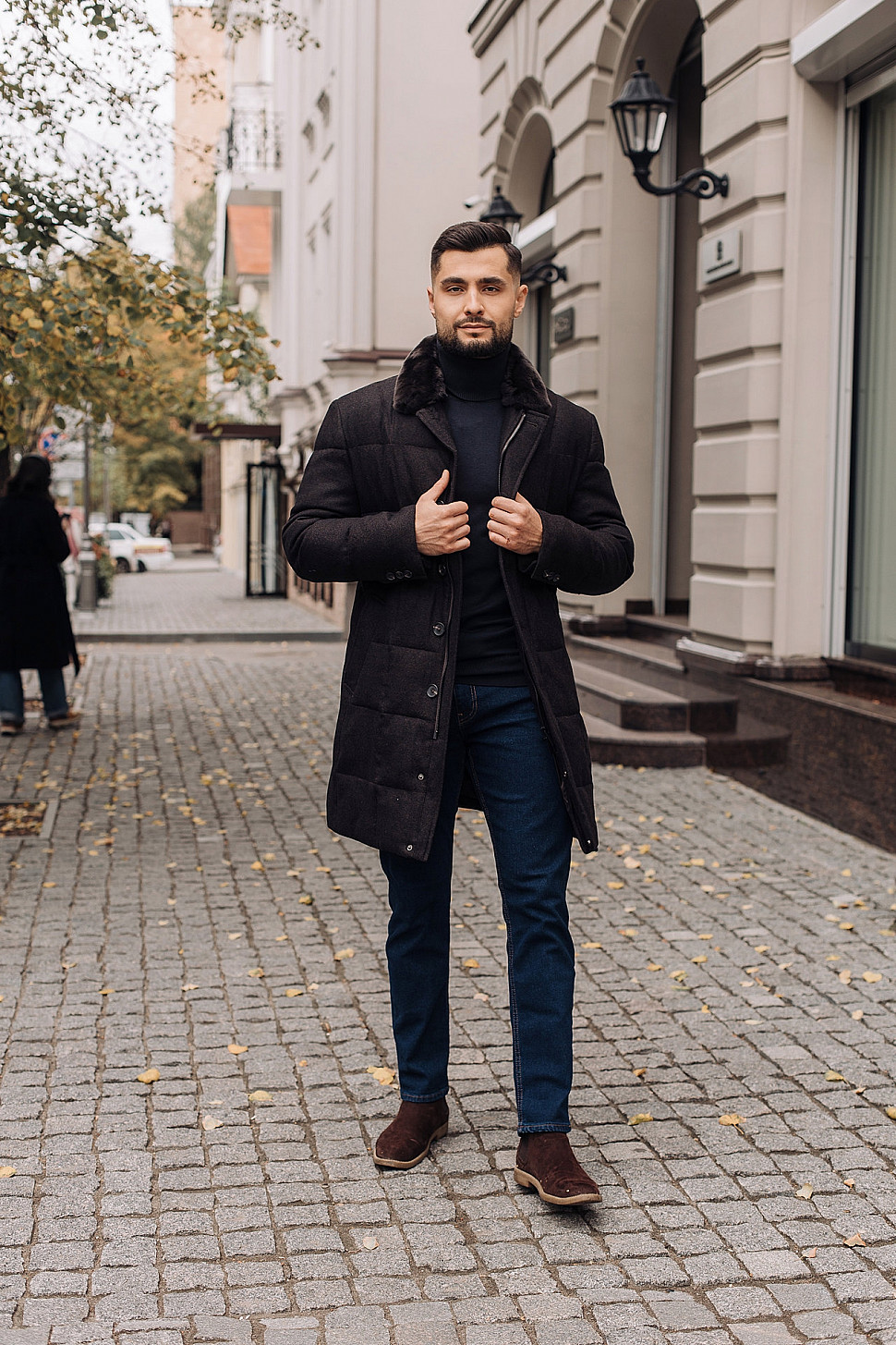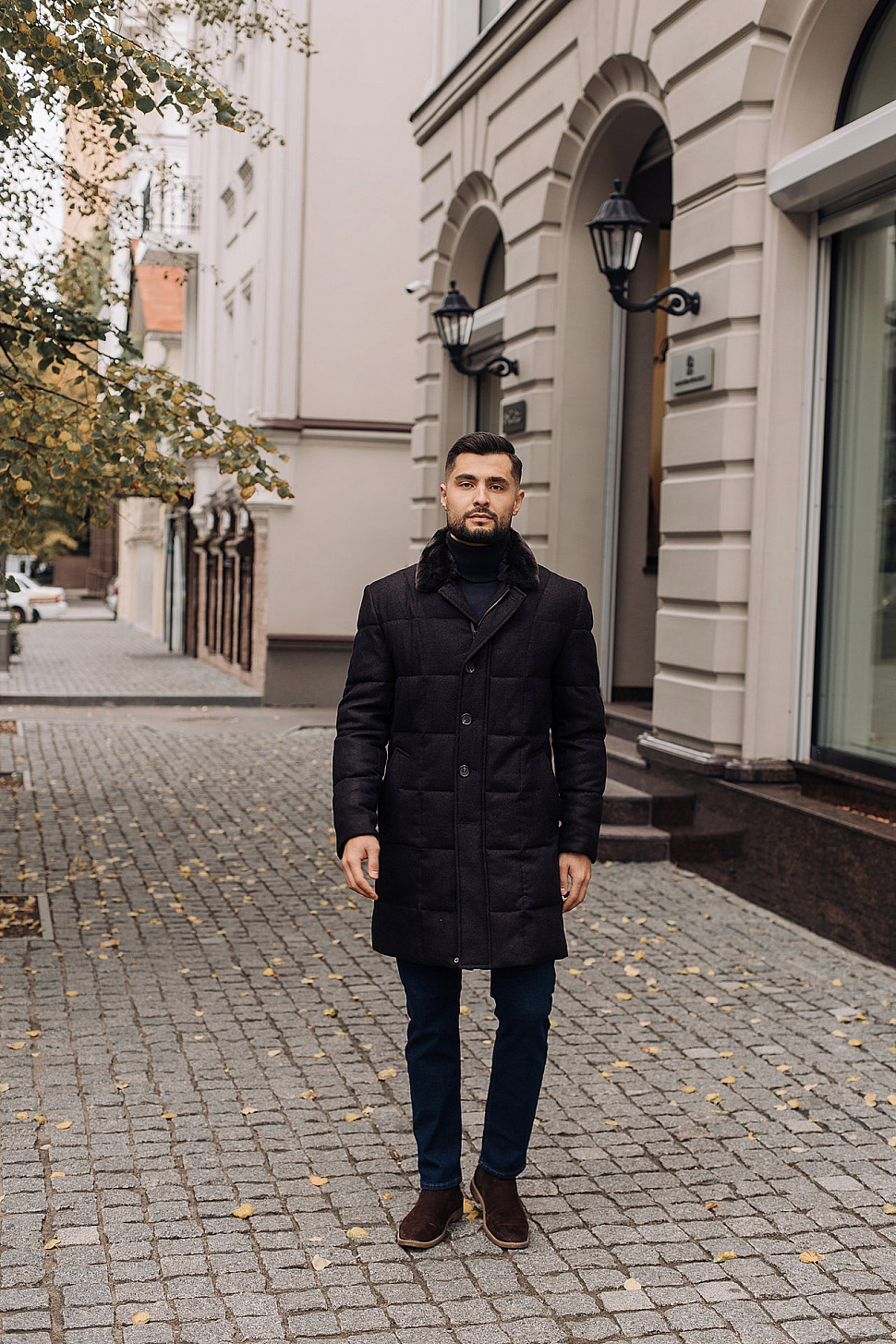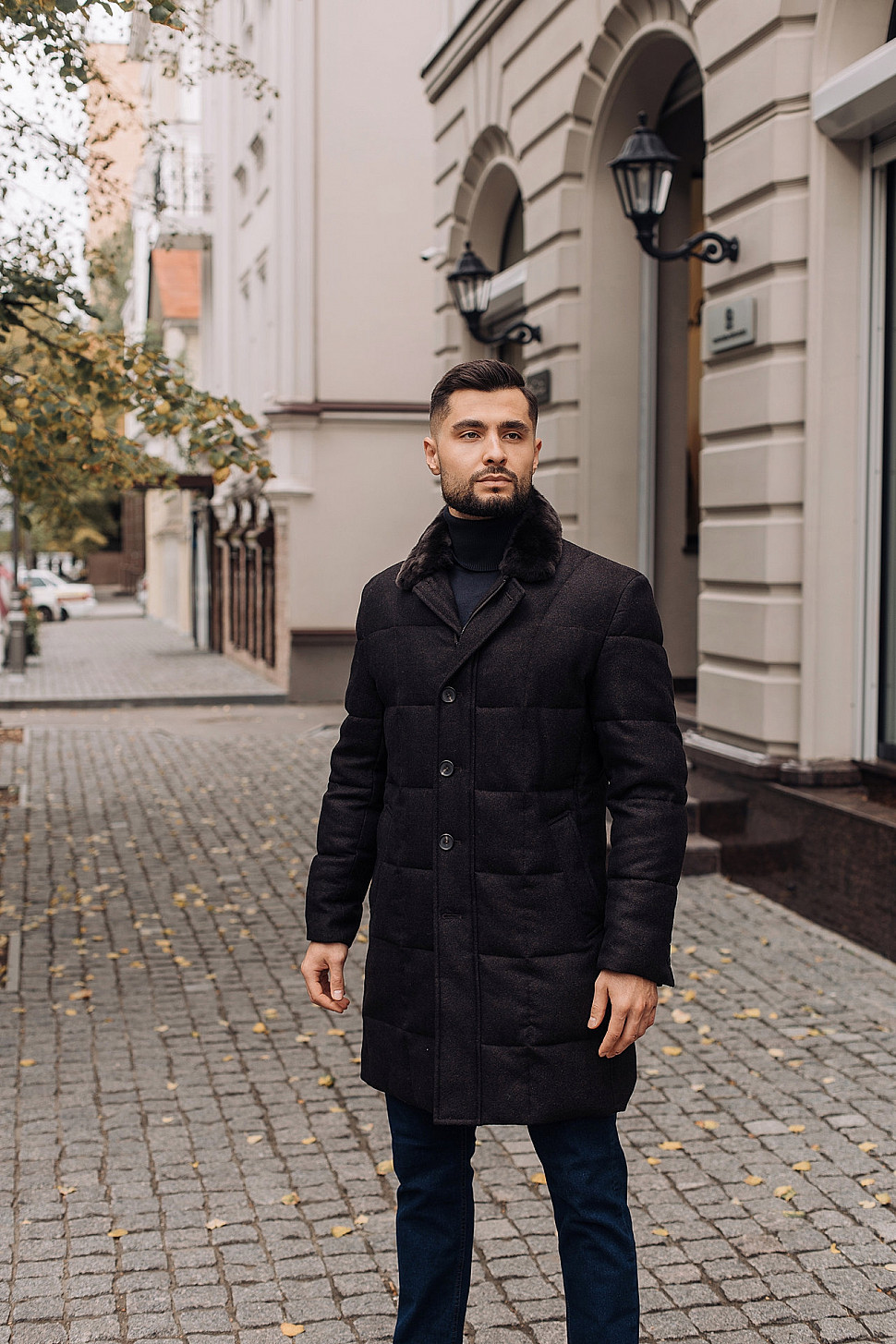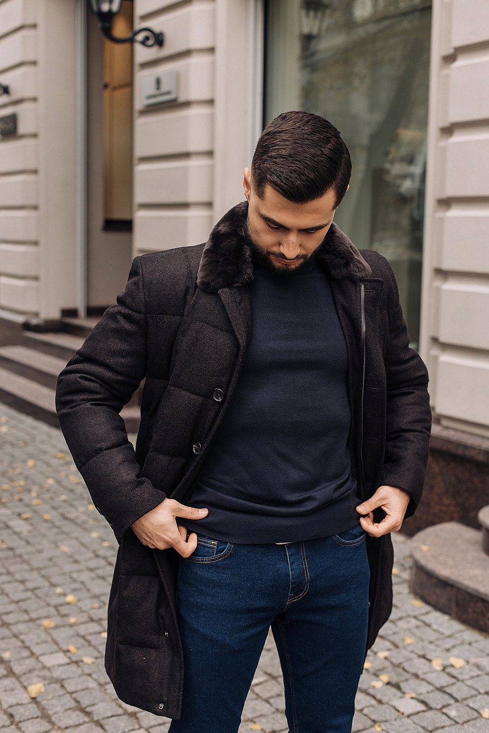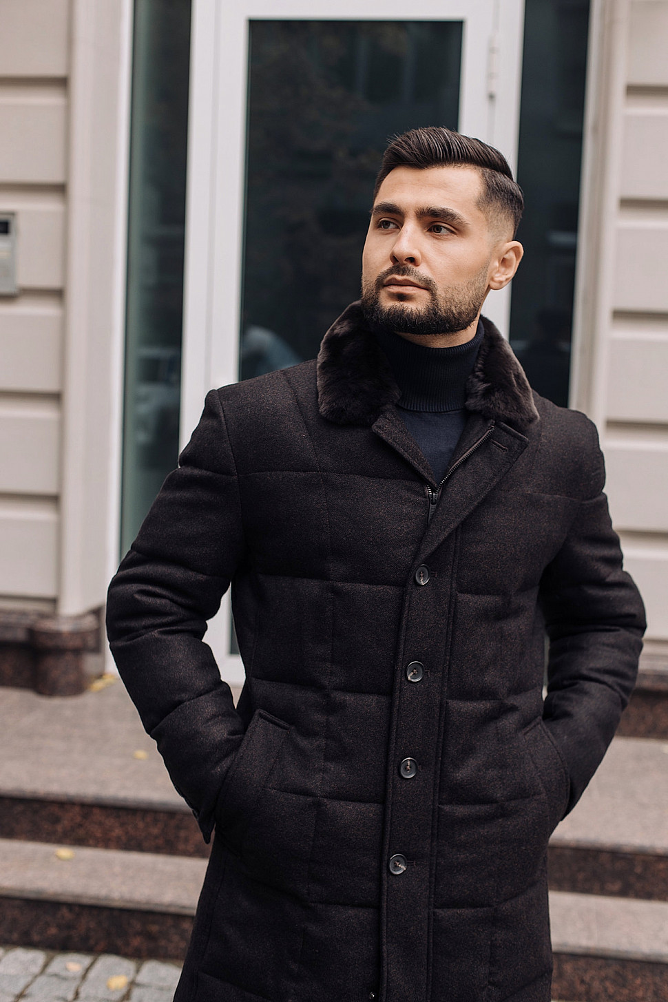 Мужская куртка темно-коричневого цвета с меховым воротником