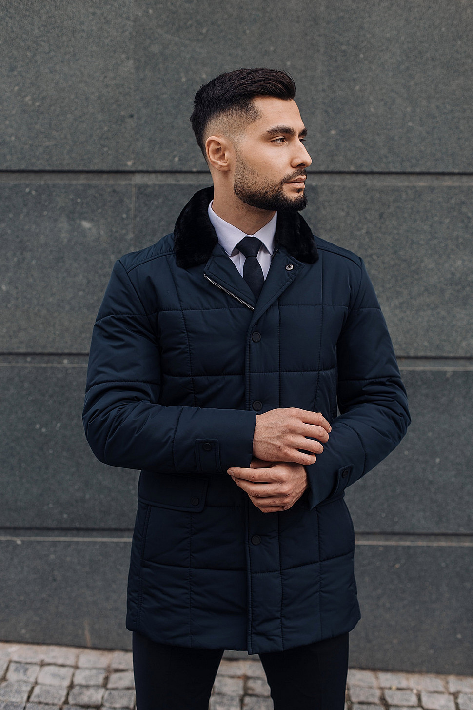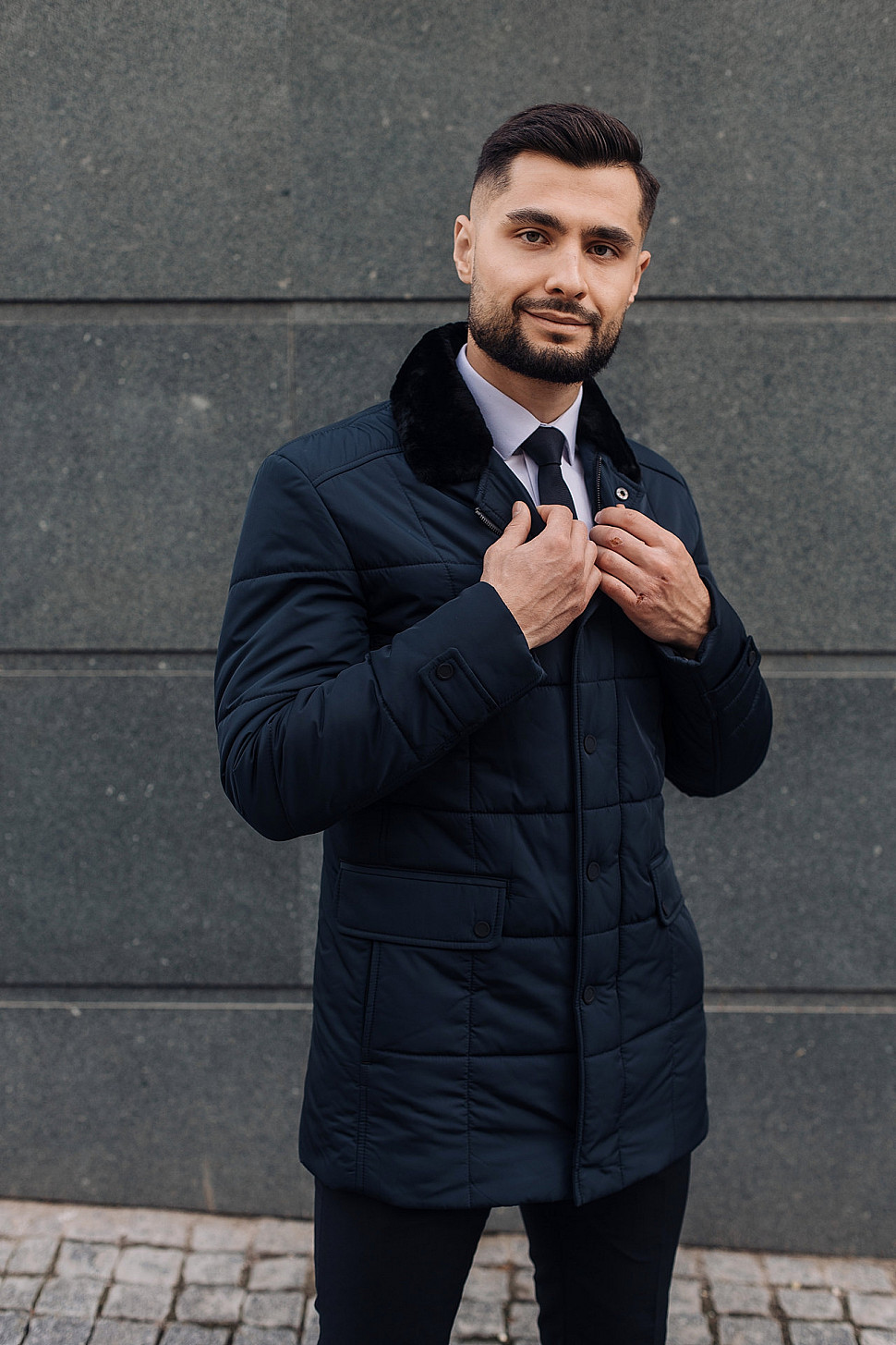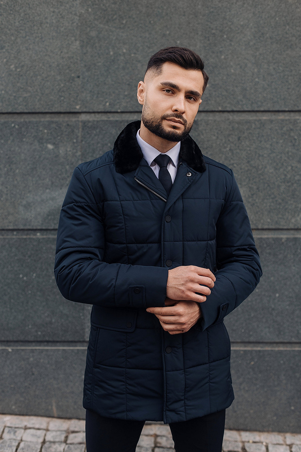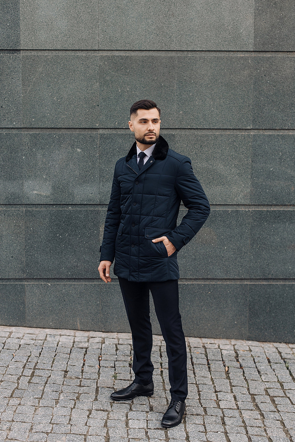 Мужская куртка темно-коричневого цвета с меховым воротником