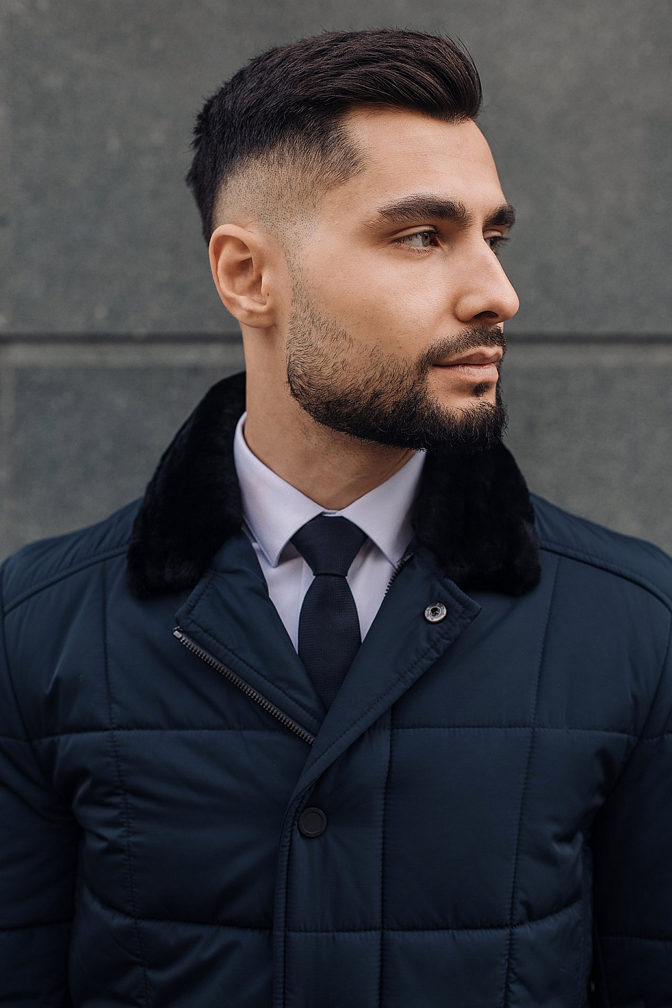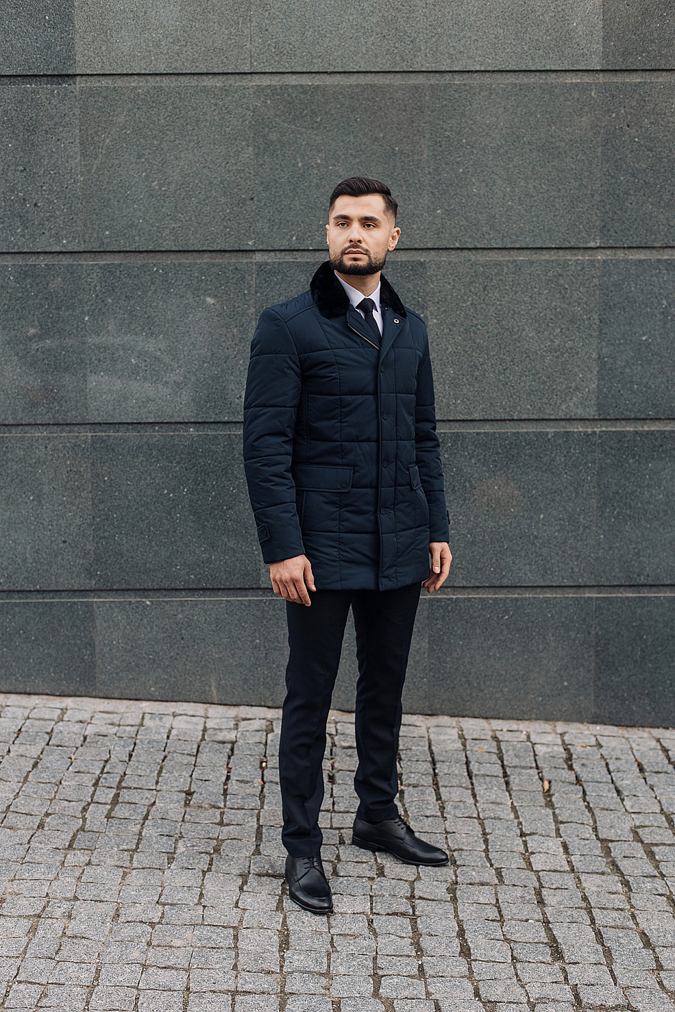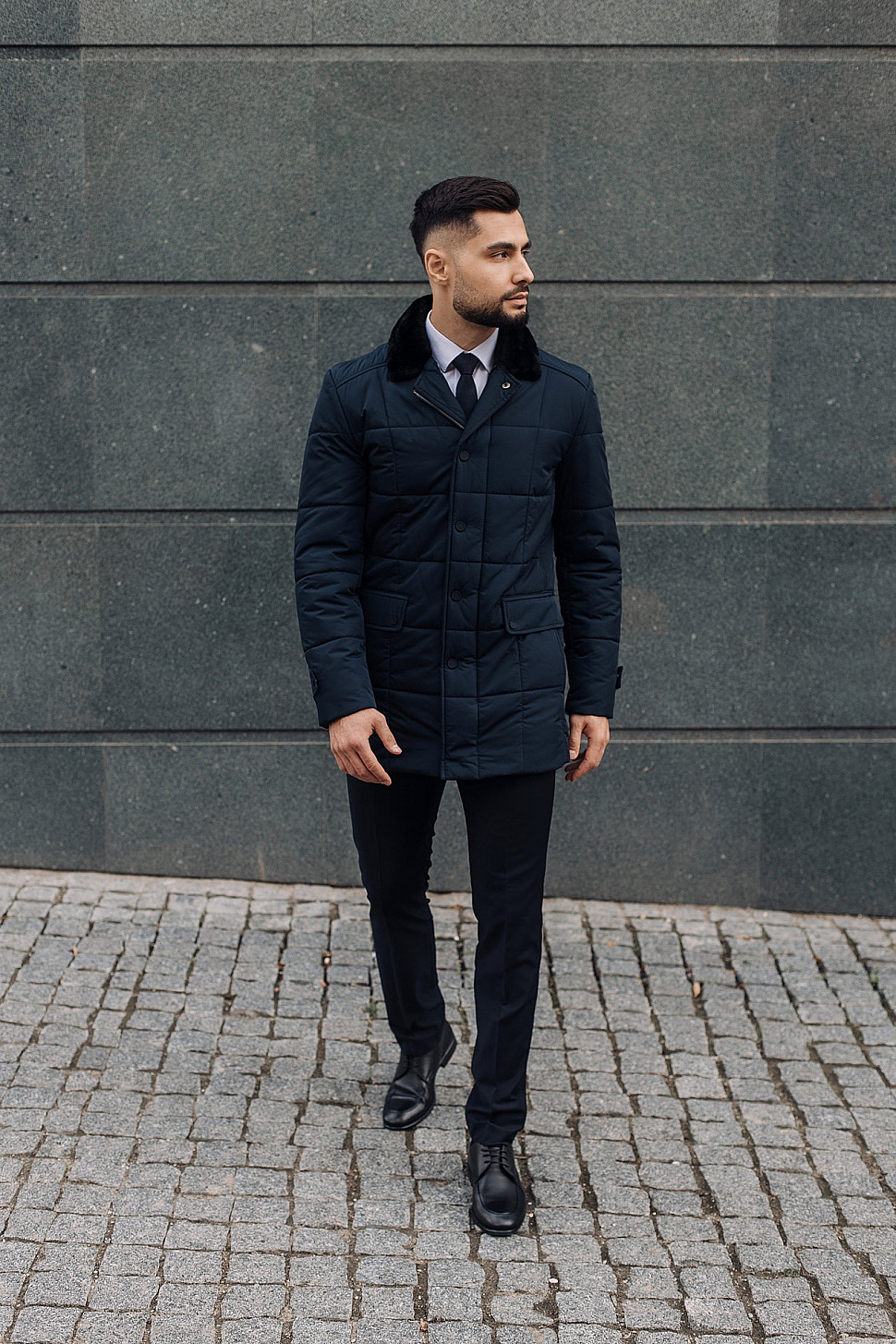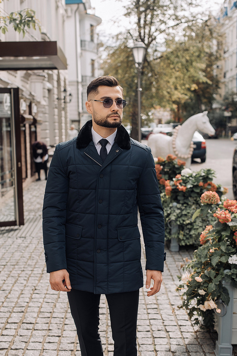 Мужская куртка темно-коричневого цвета с меховым воротником