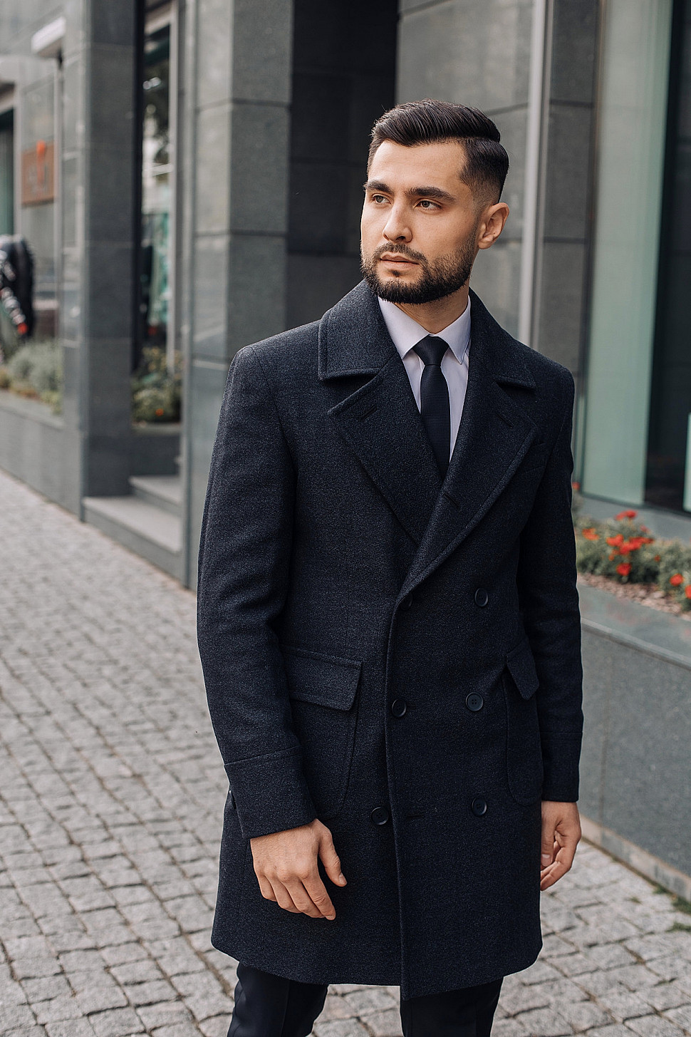 Мужской костюм двойка темно-синий двубортный с золотыми пуговицами