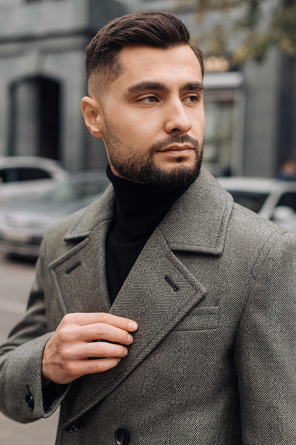 Мужское пальто серого цвета фактурное