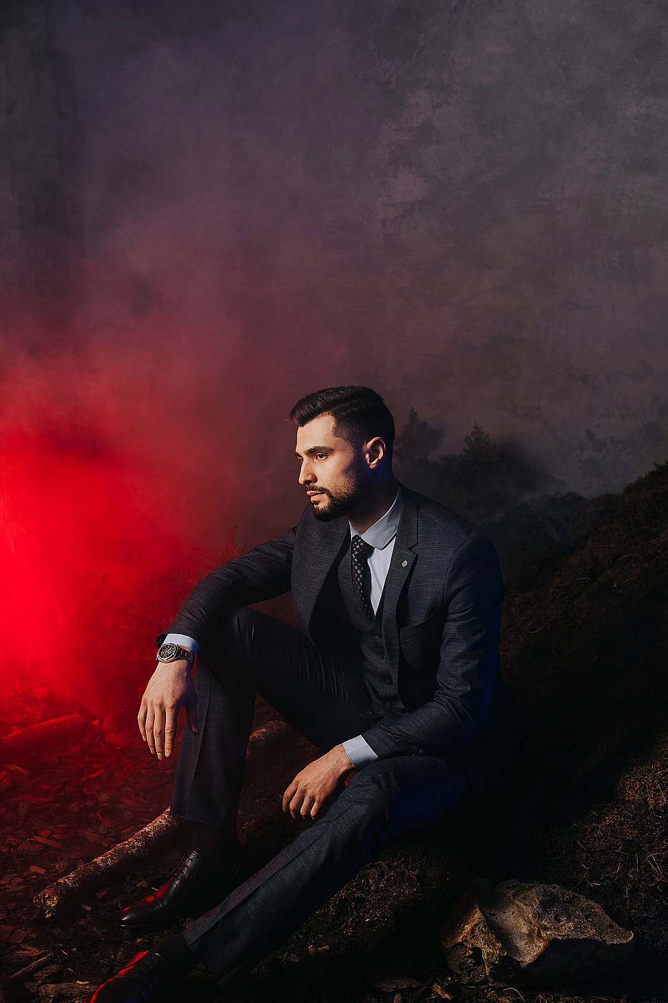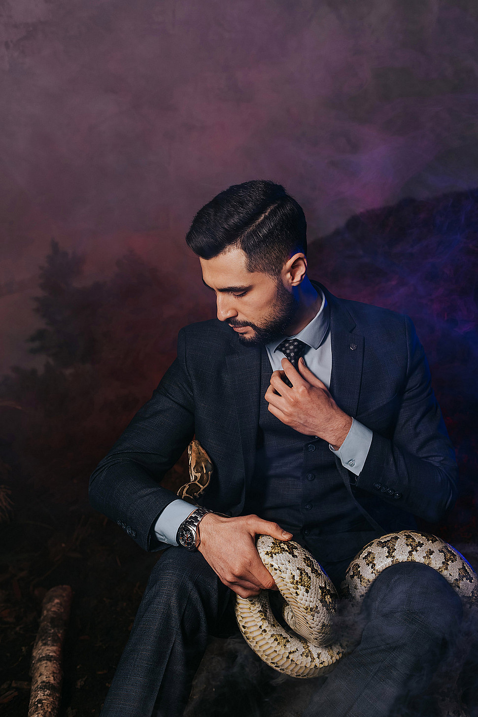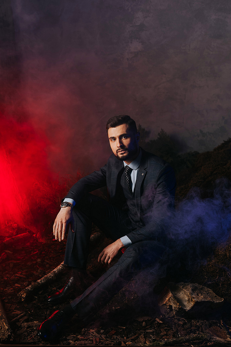 Мужской костюм тройка темно-фиолетовый, классический образ