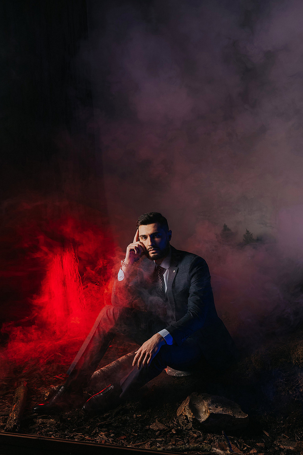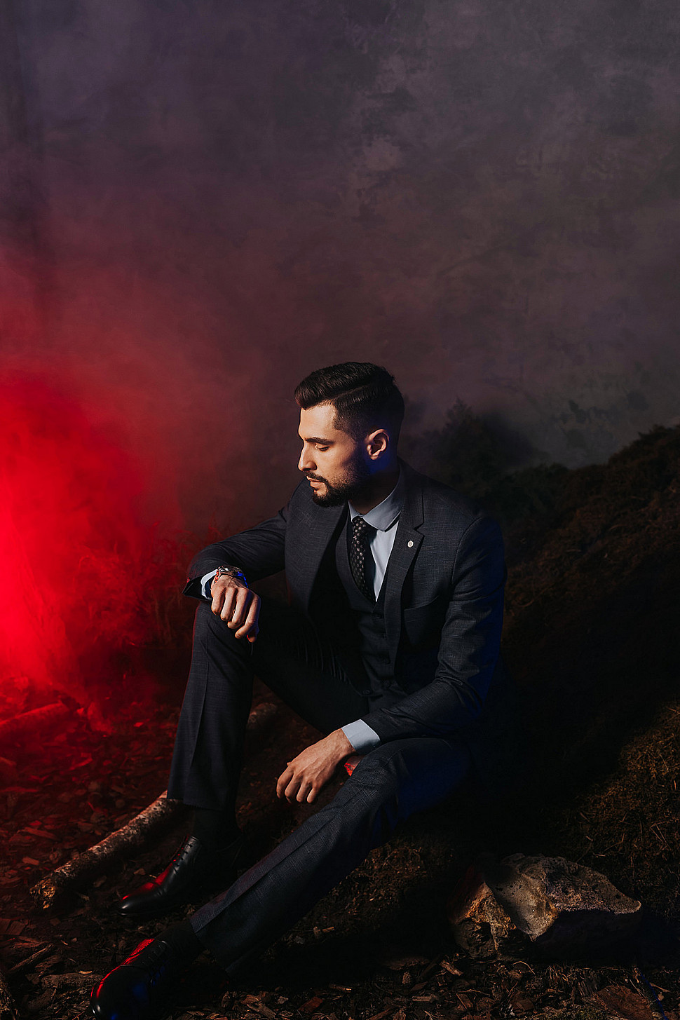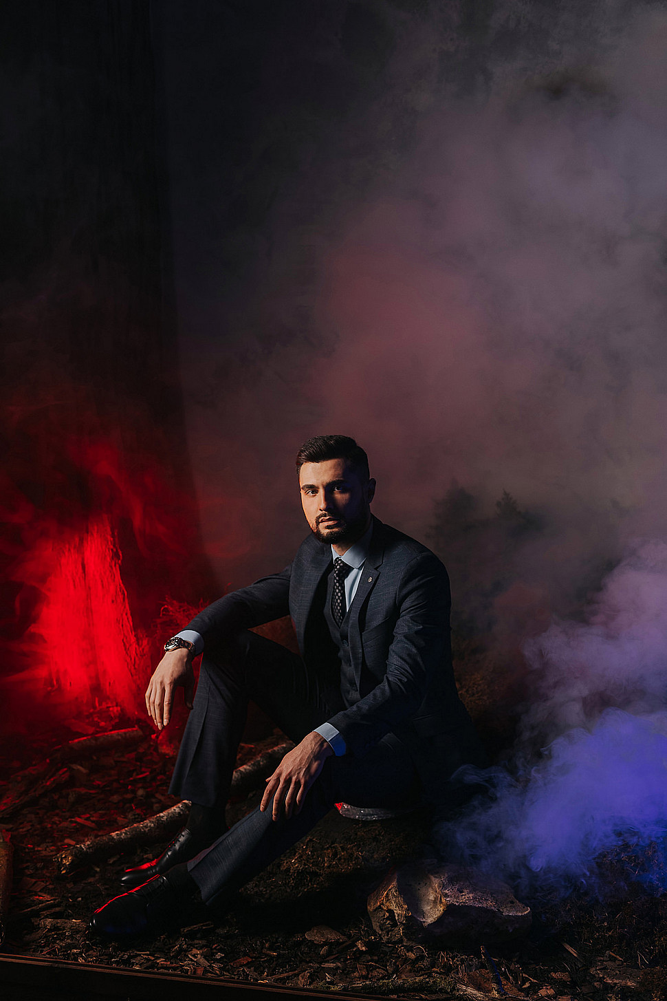 Мужской костюм тройка темно-фиолетовый, классический образ