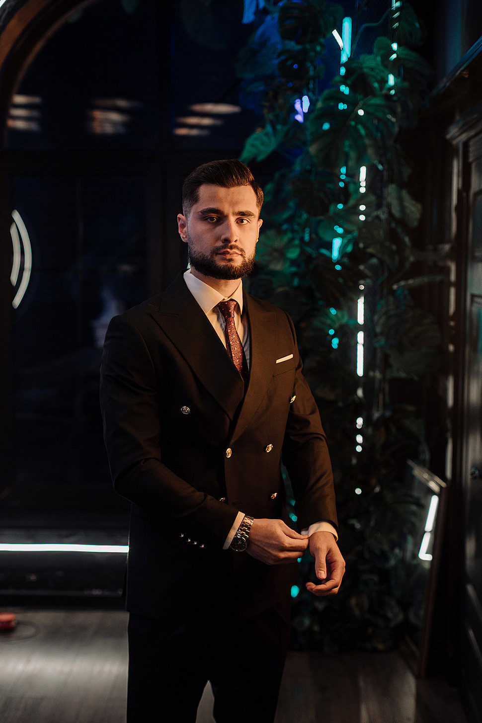 Мужской костюм тройка бордового цвета фактурный