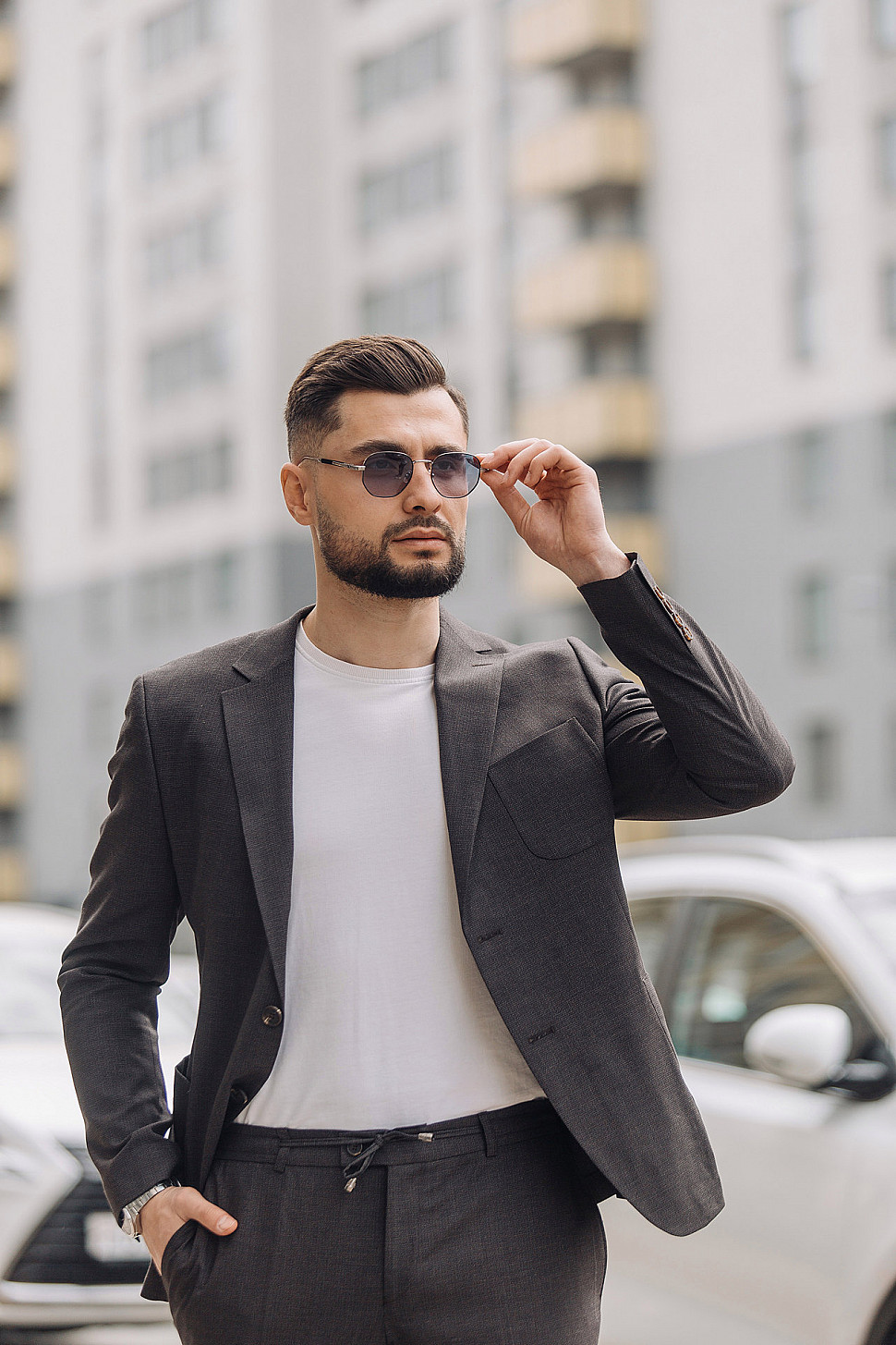 Мужской костюм двойка серого цвета в стиле кэжуал