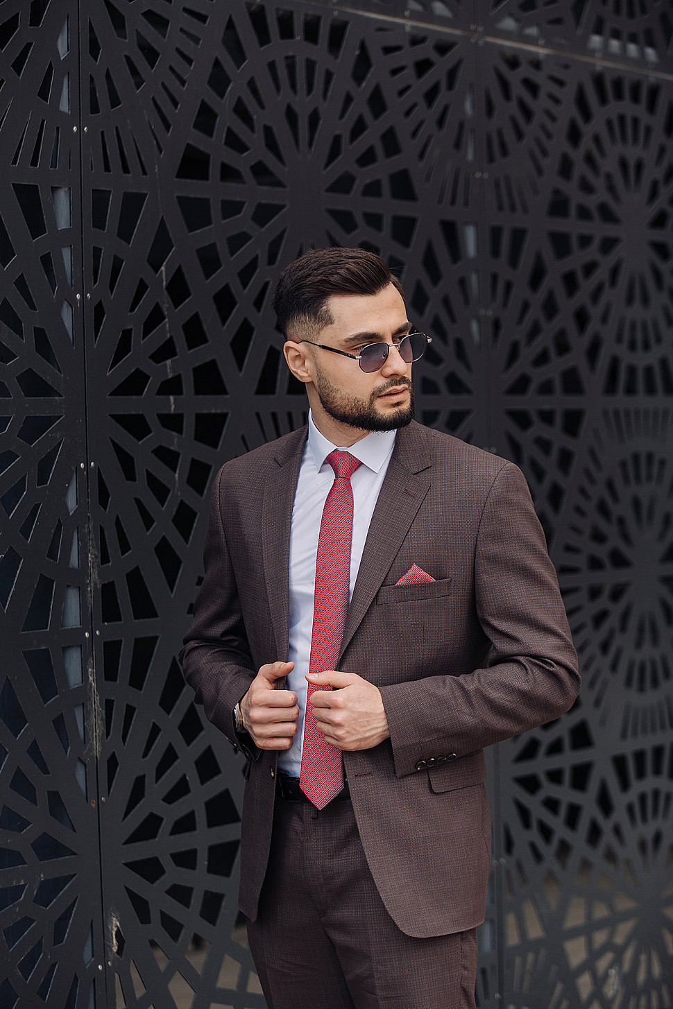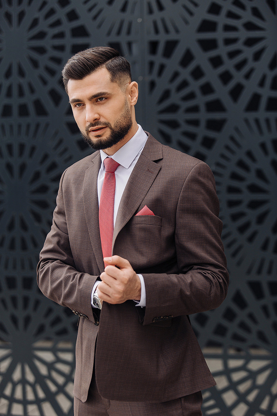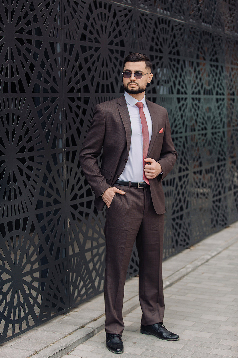 Мужской костюм двойка коричневого цвета в стиле кэжуал