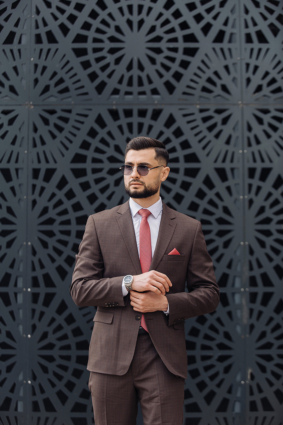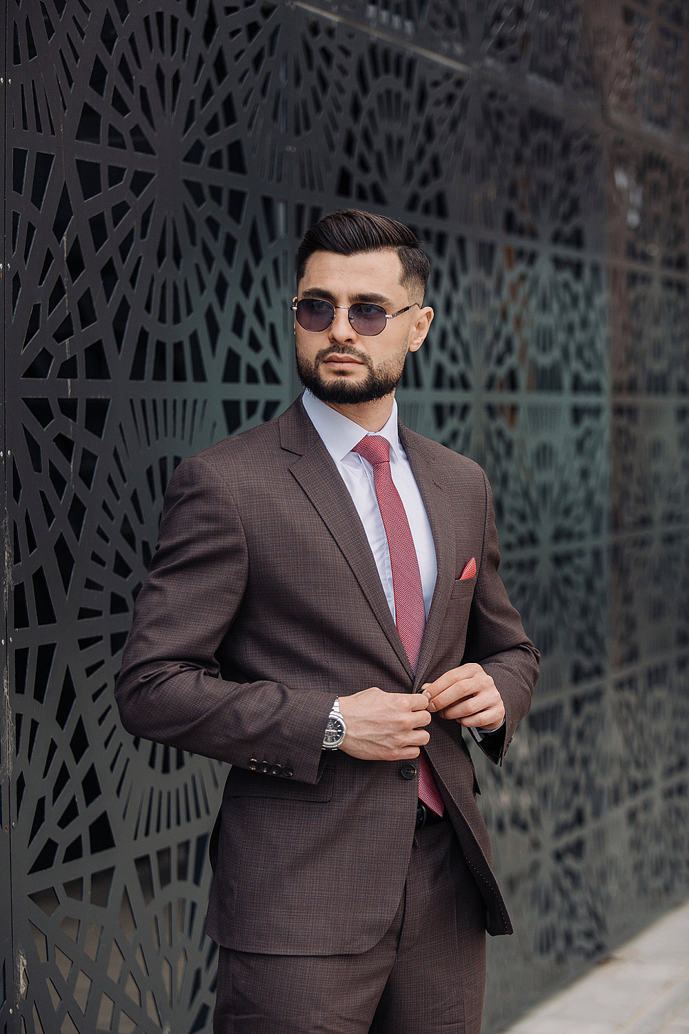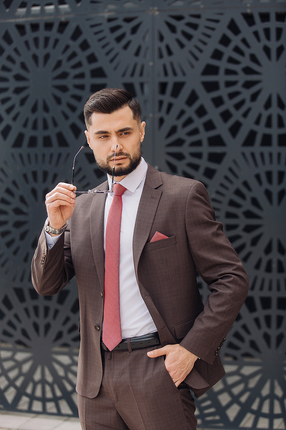 Мужской костюм двойка коричневого цвета в стиле кэжуал