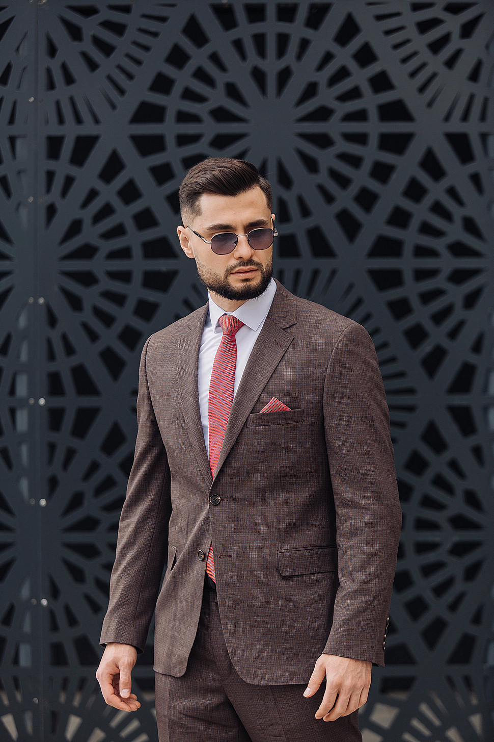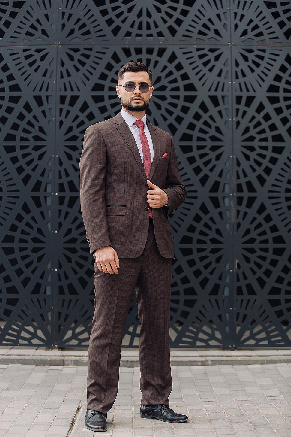 Мужской костюм двойка коричневого цвета в мелкую клетку