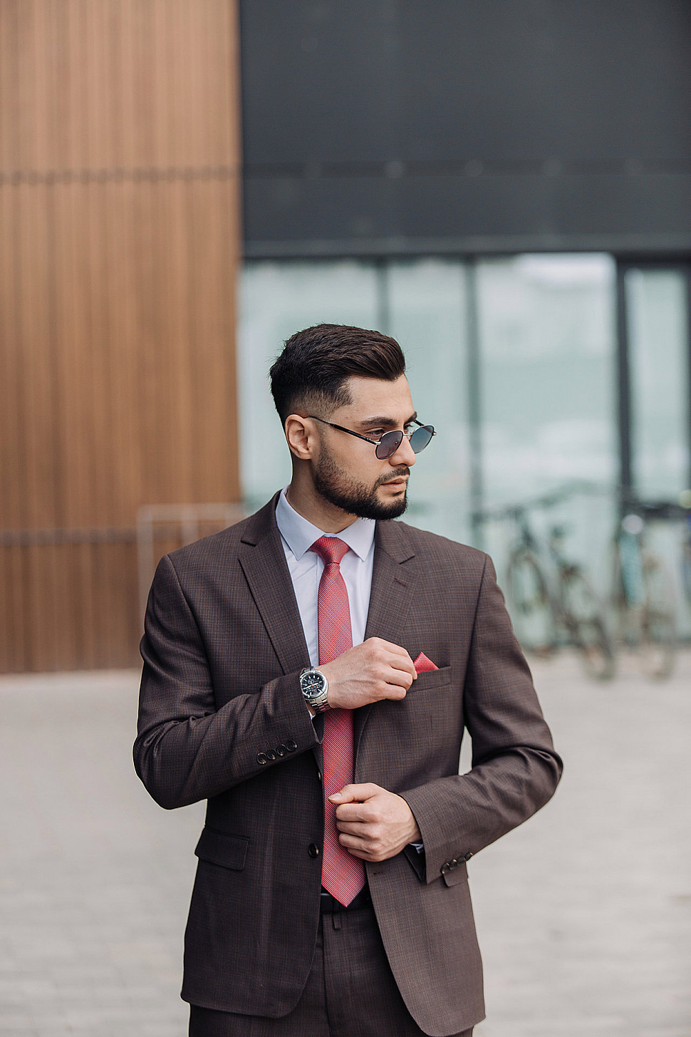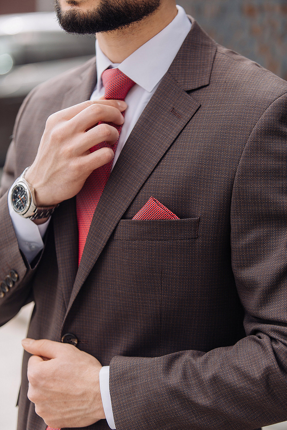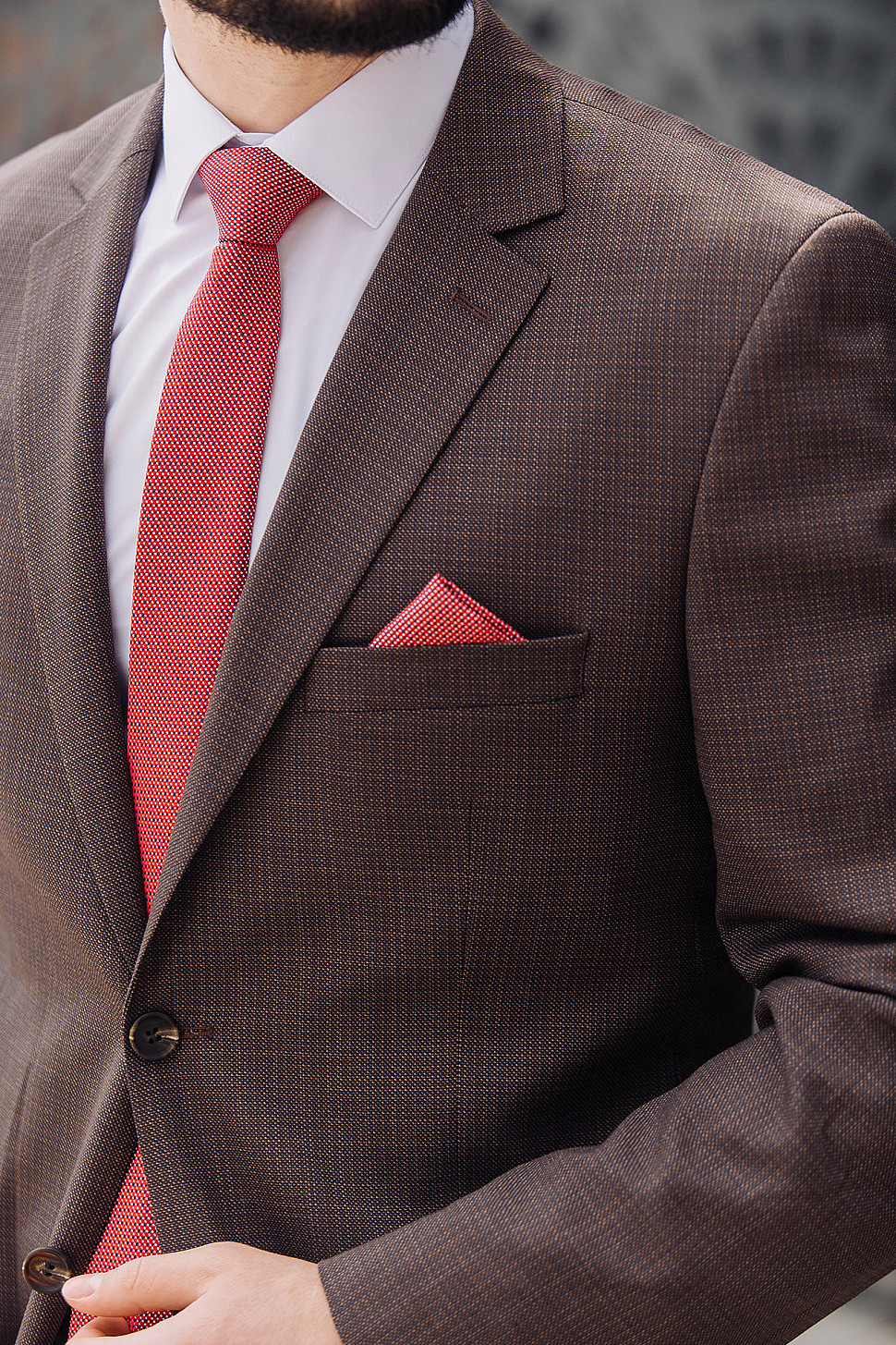Мужской костюм двойка терракотового цвета с накладными карманами