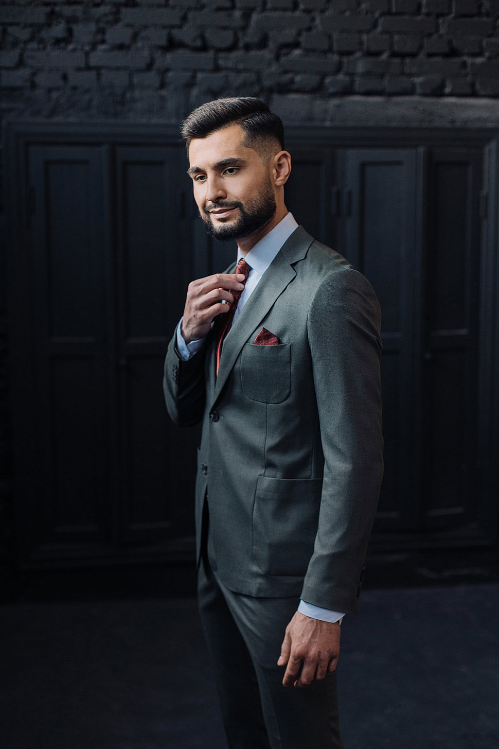 Костюм мужской тройка темно-бордового цвета фактурный