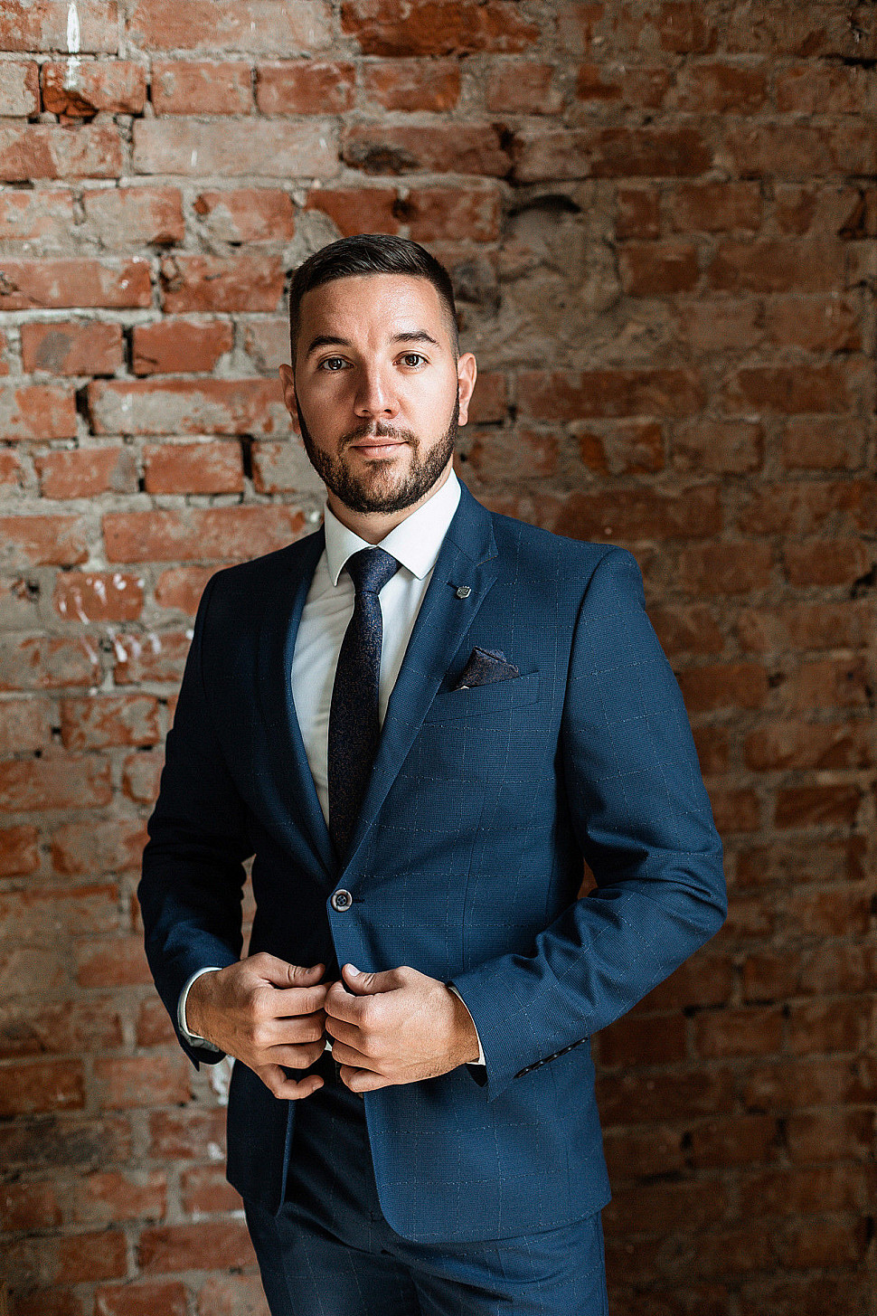Мужской костюм двойка синего цвета фактурный