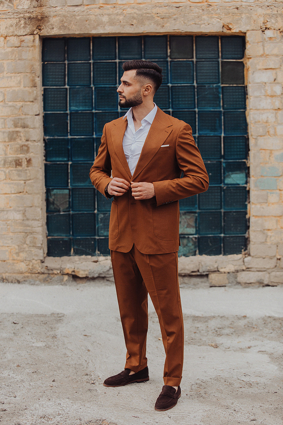 Мужской костюм двойка коричневого цвета в стиле кэжуал