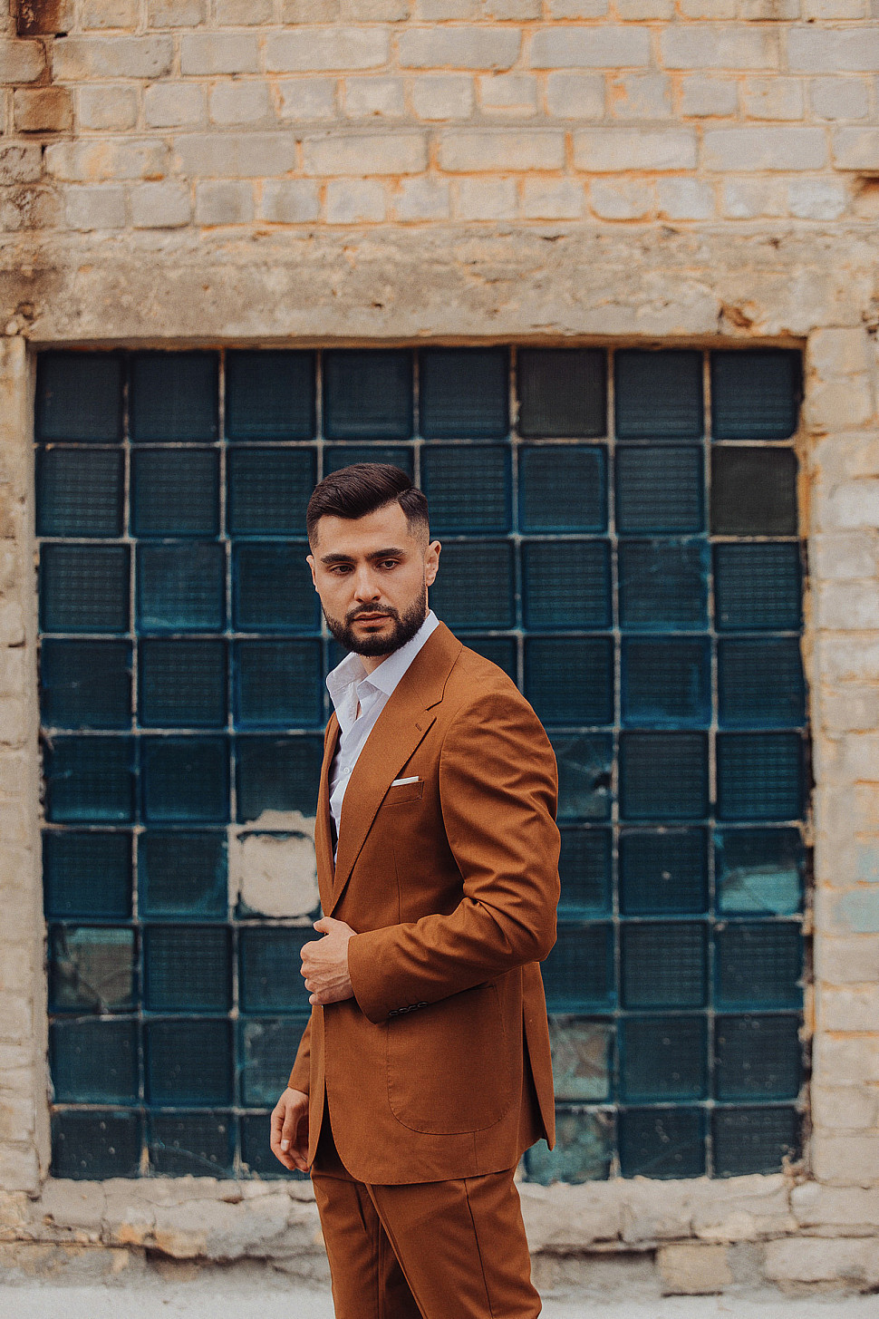 Мужской костюм двойка терракотового цвета с накладными карманами