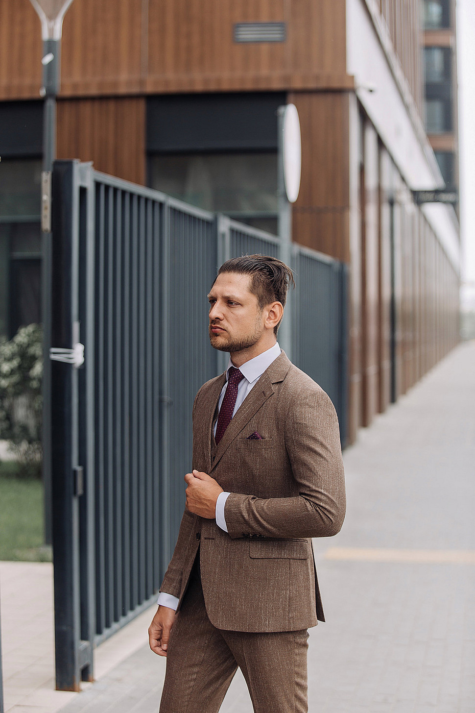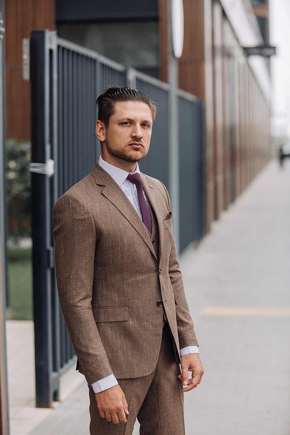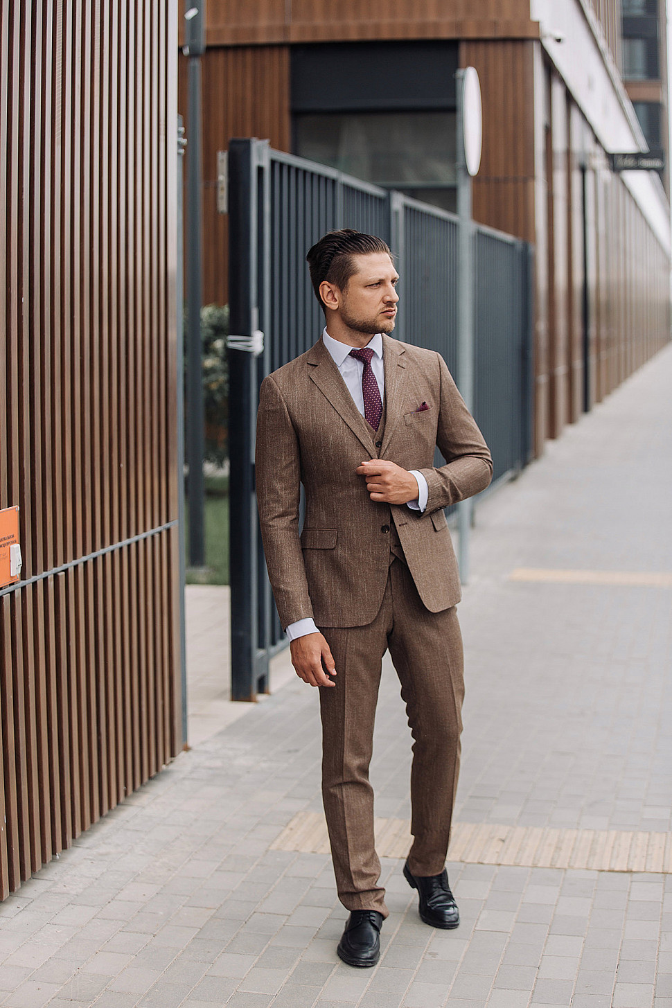 Мужской костюм тройка коричневого цвета текстурный