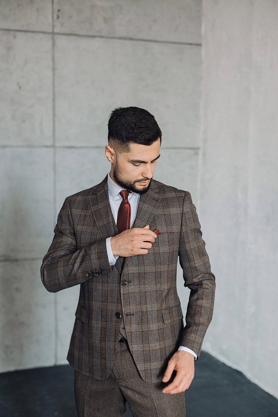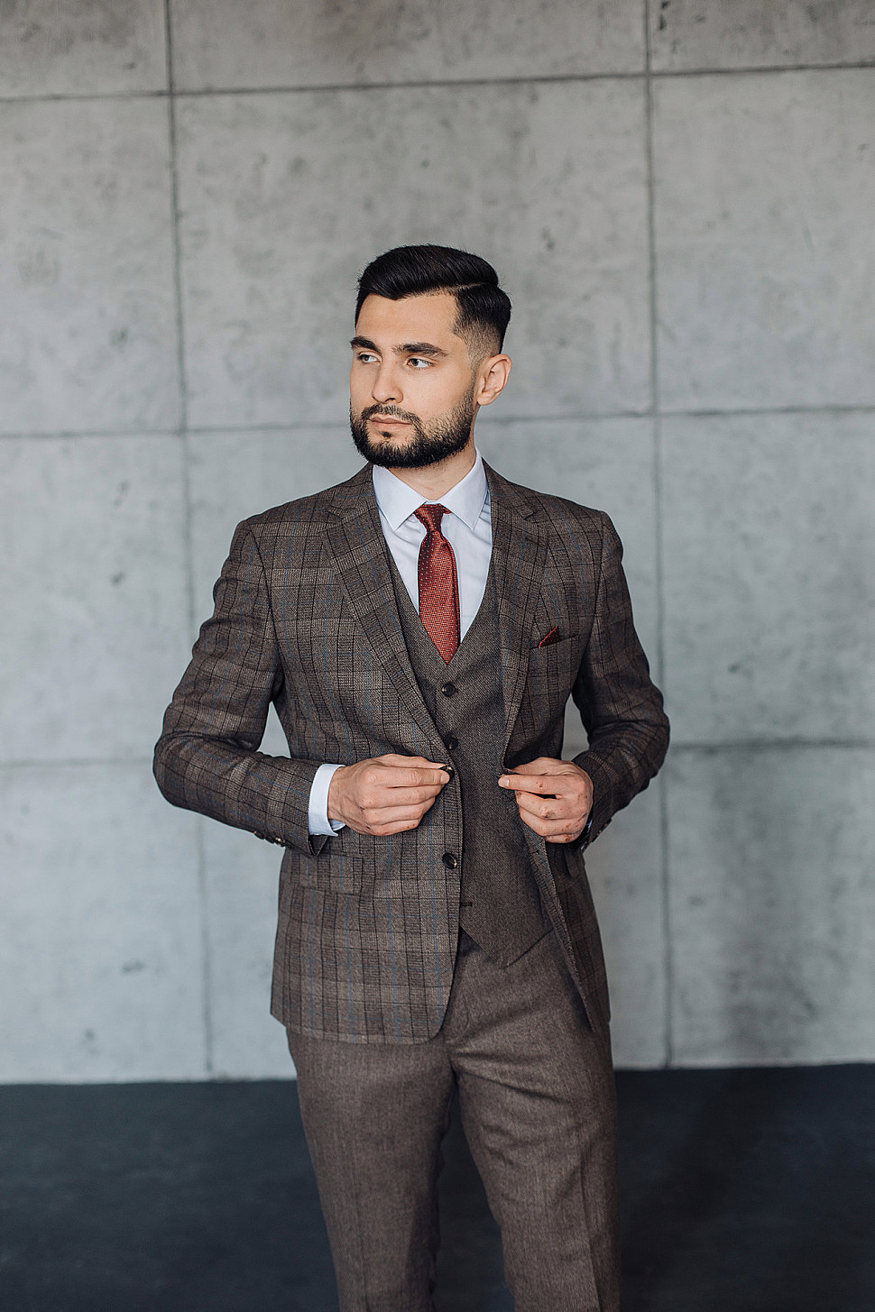 Костюм мужской тройка темно-бордового цвета фактурный