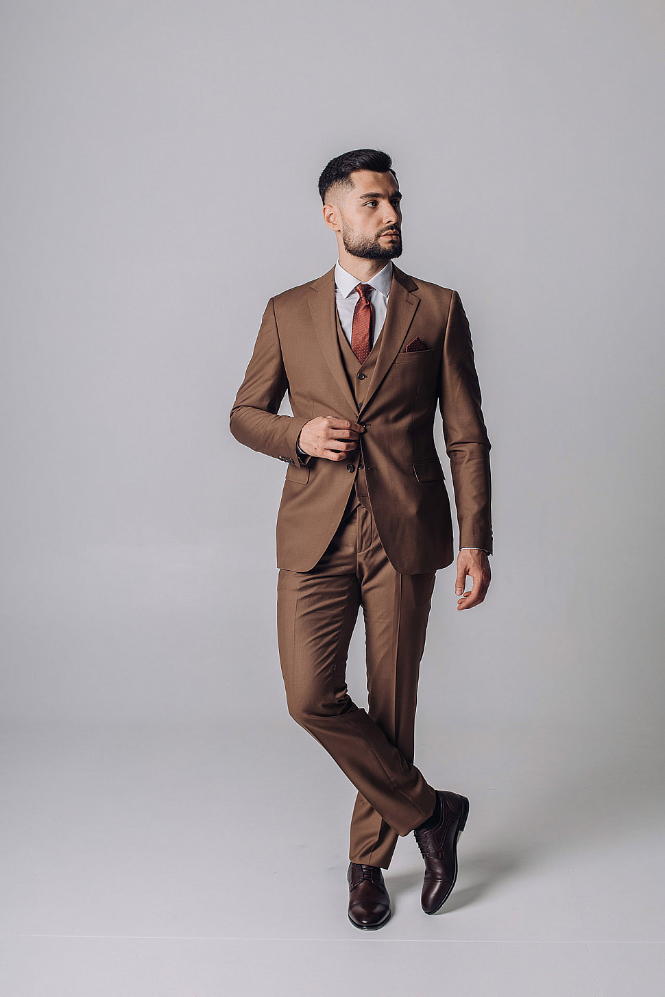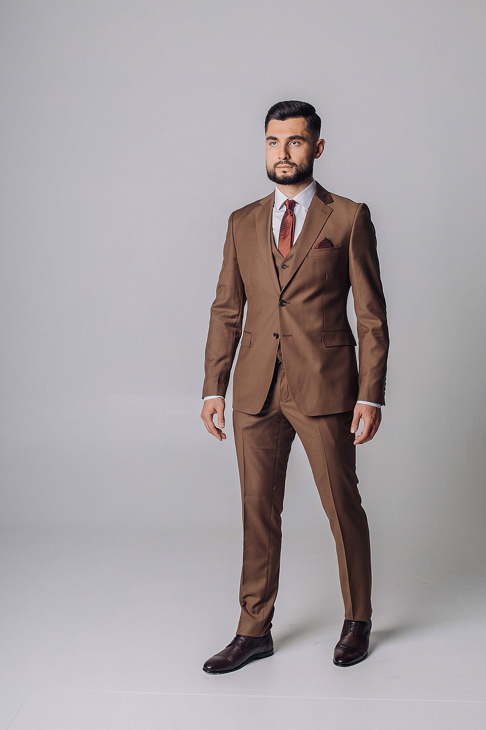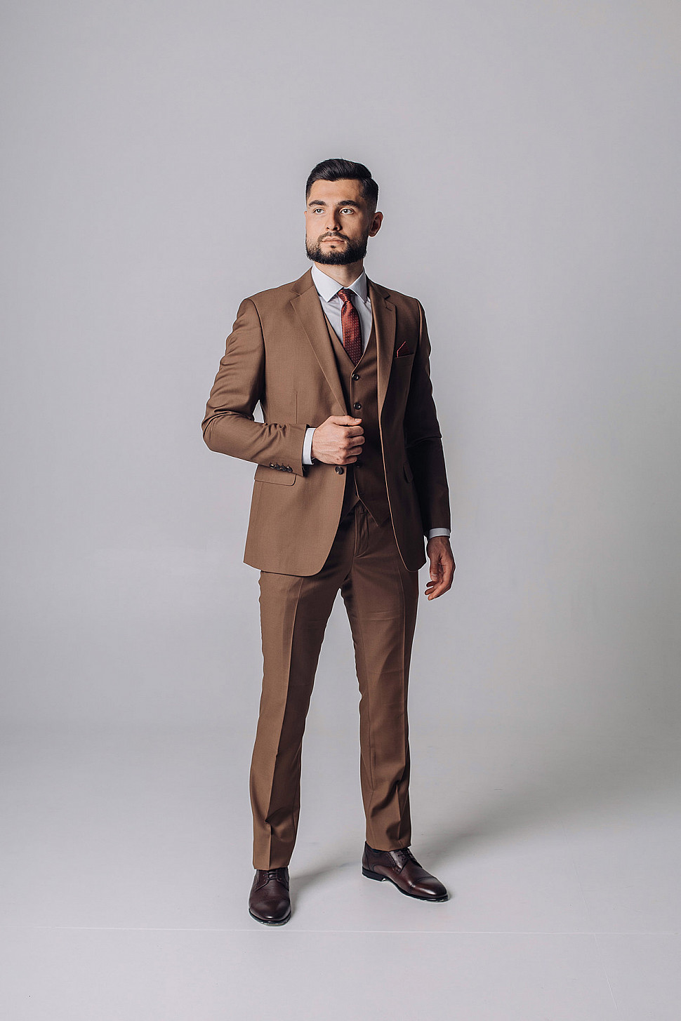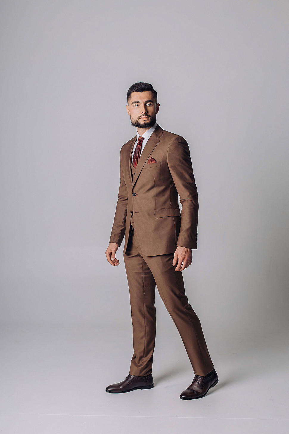 Мужской костюм двойка коричневого цвета в стиле кэжуал