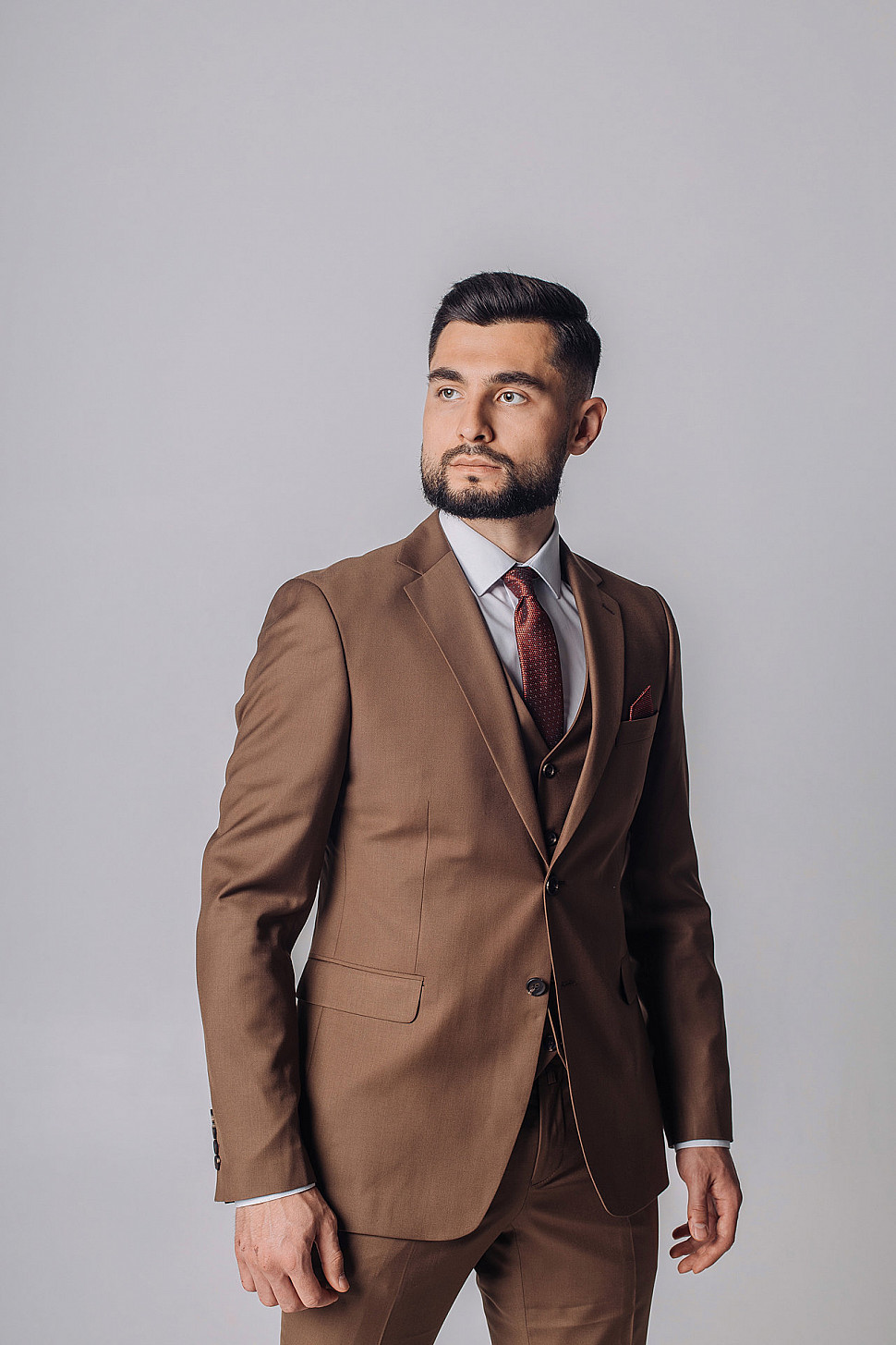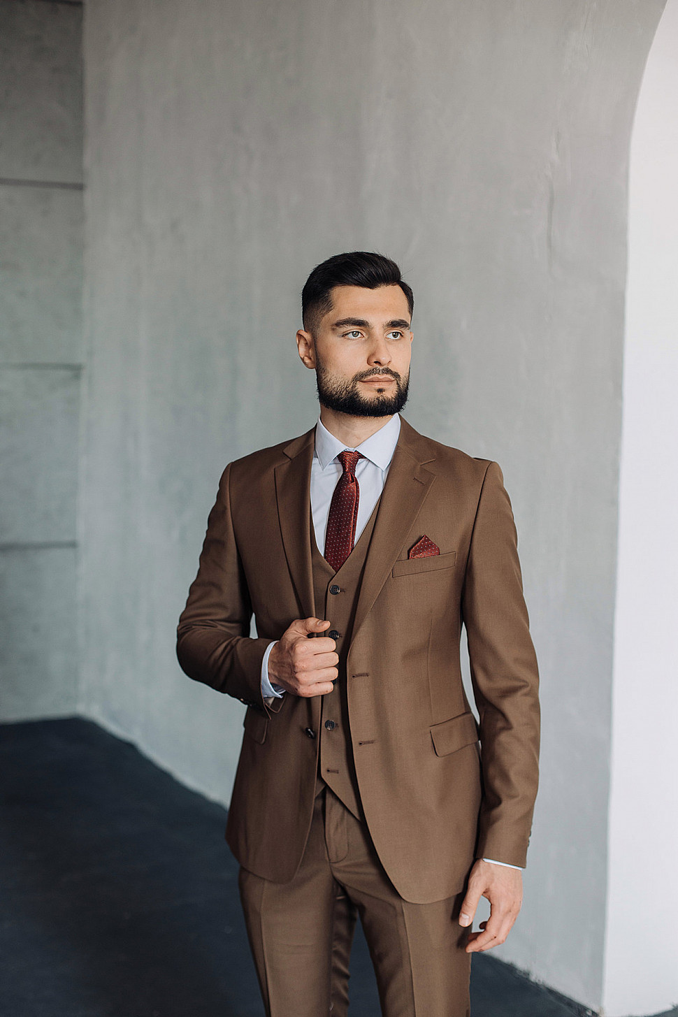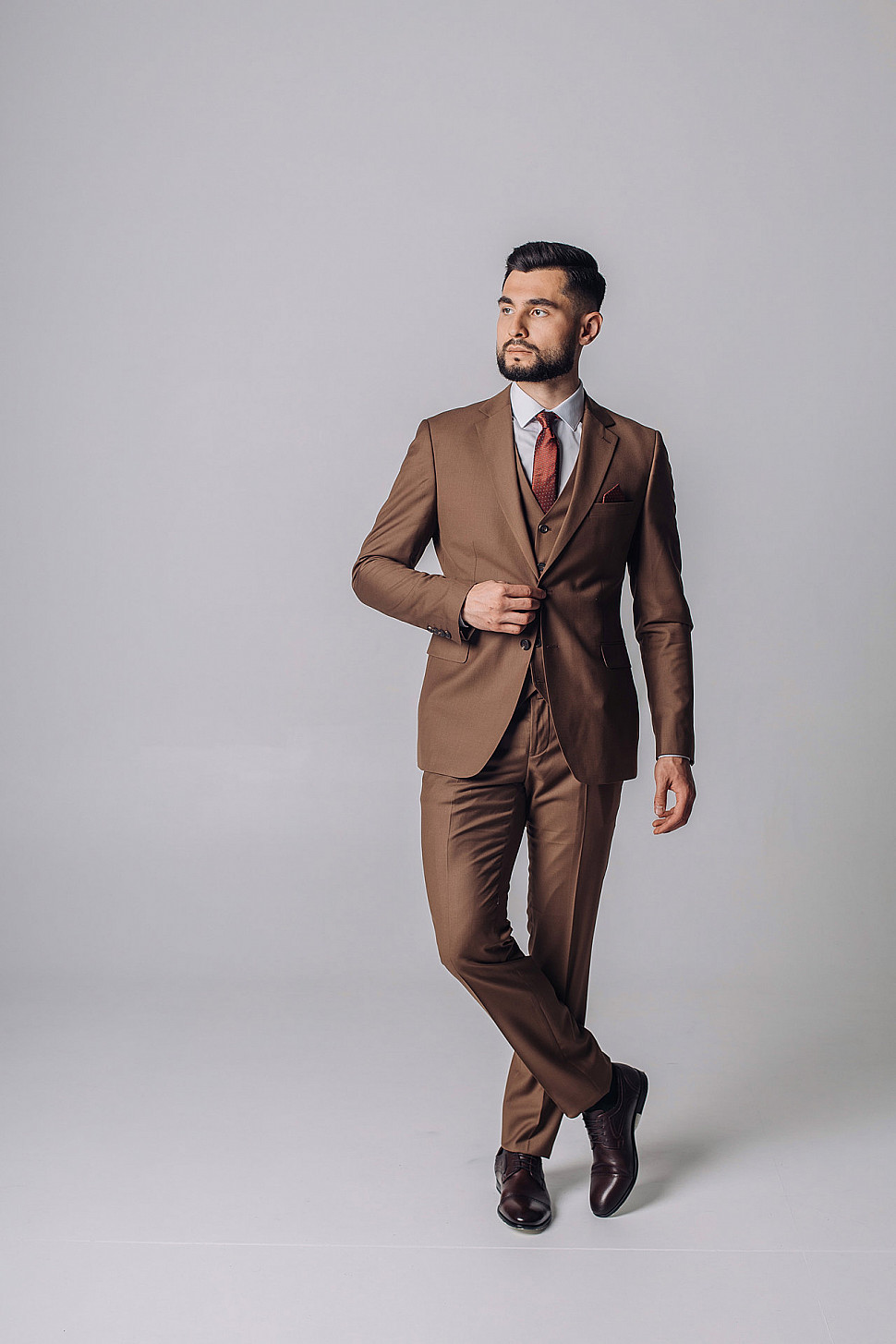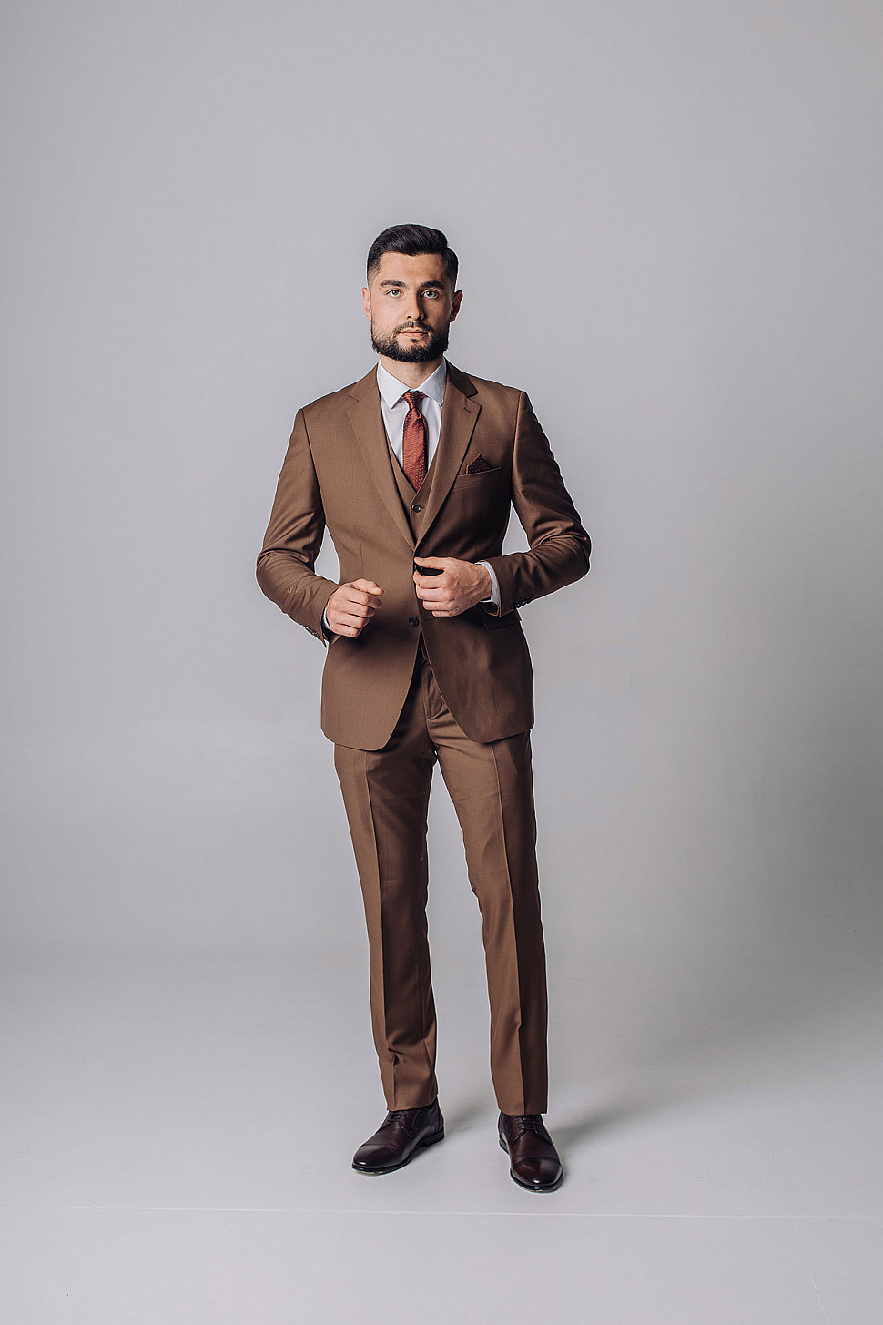Мужской костюм двойка коричневого цвета в стиле кэжуал