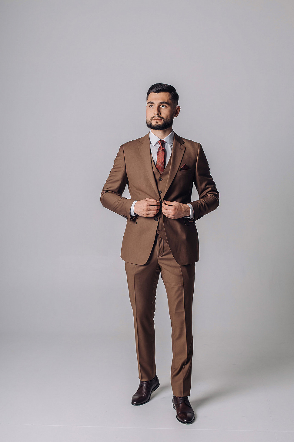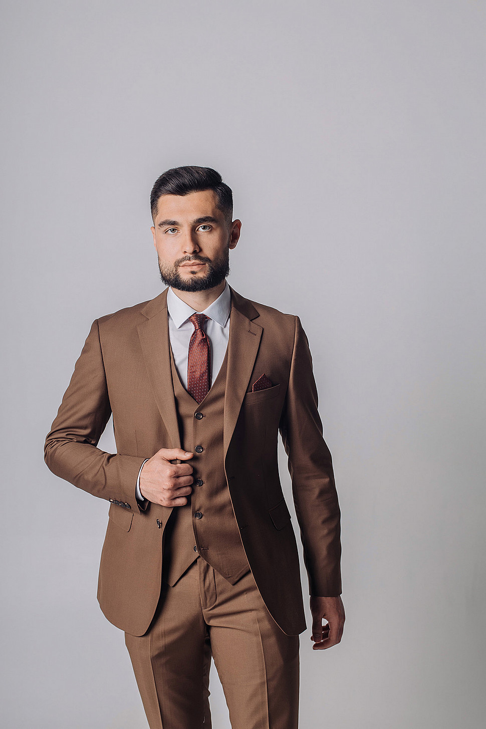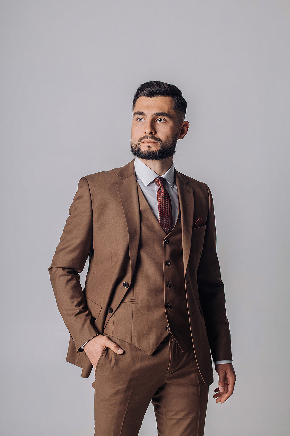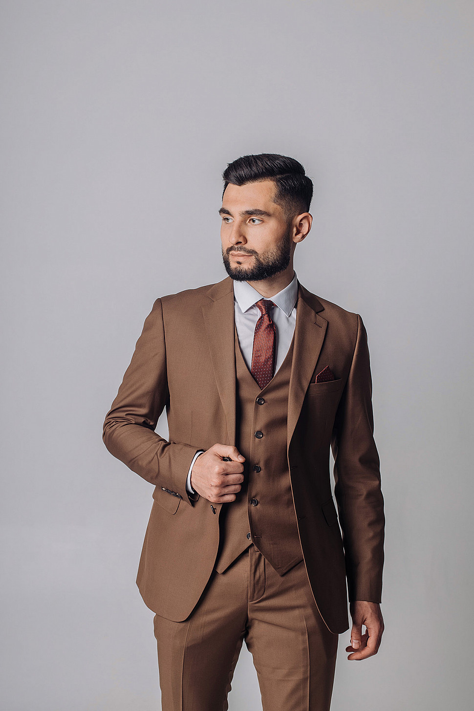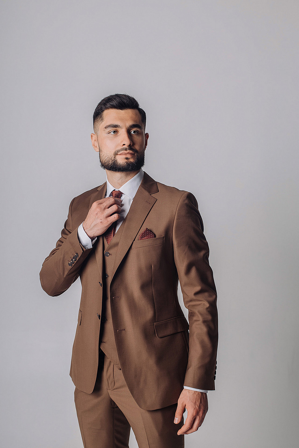 Мужской костюм двойка коричневого цвета в стиле кэжуал