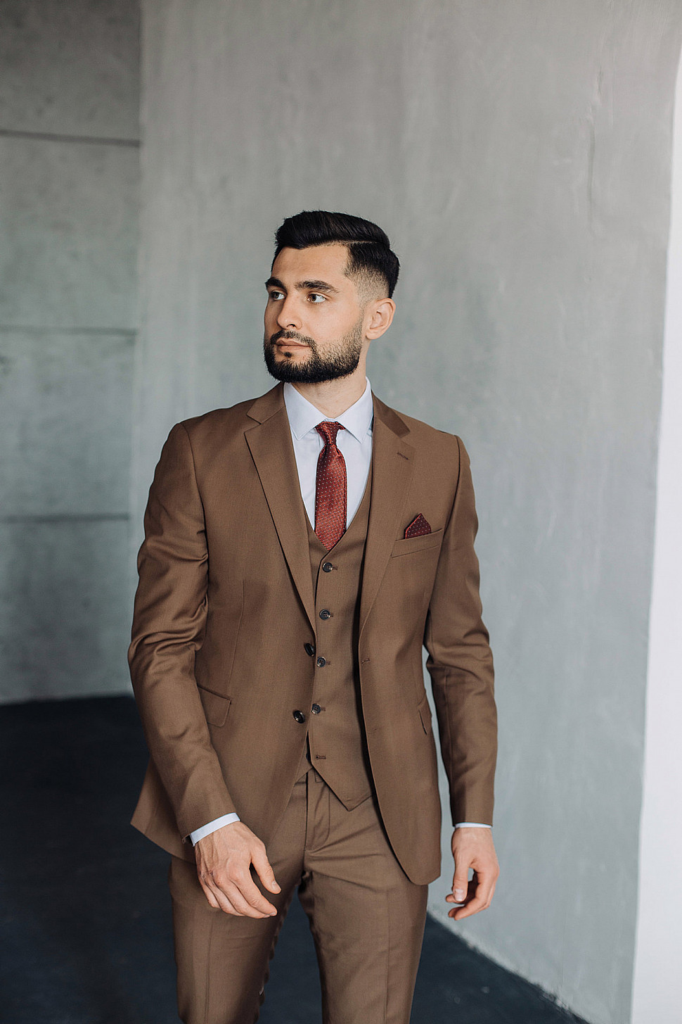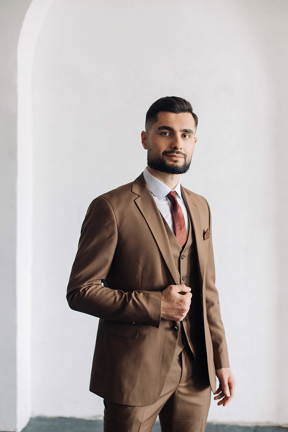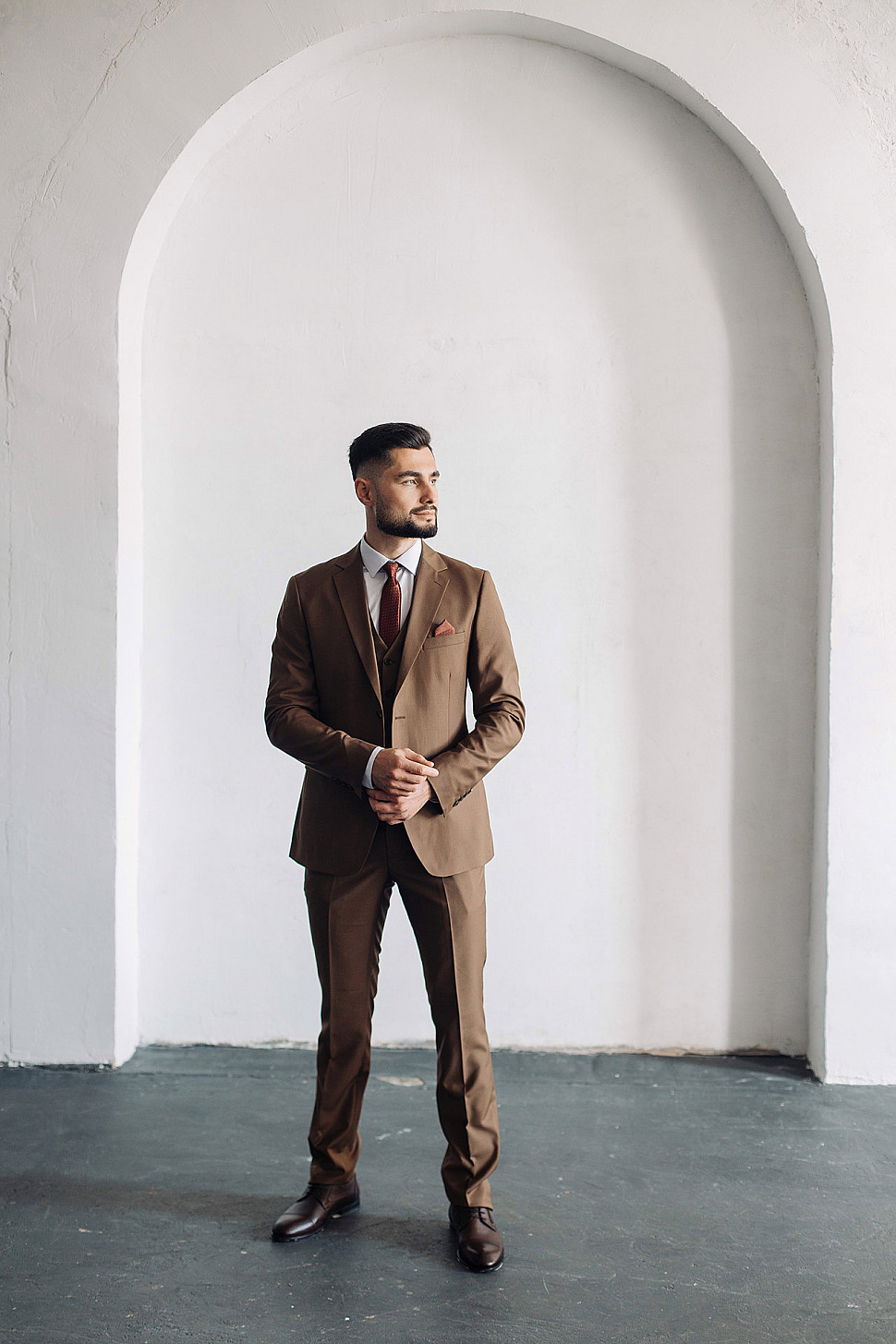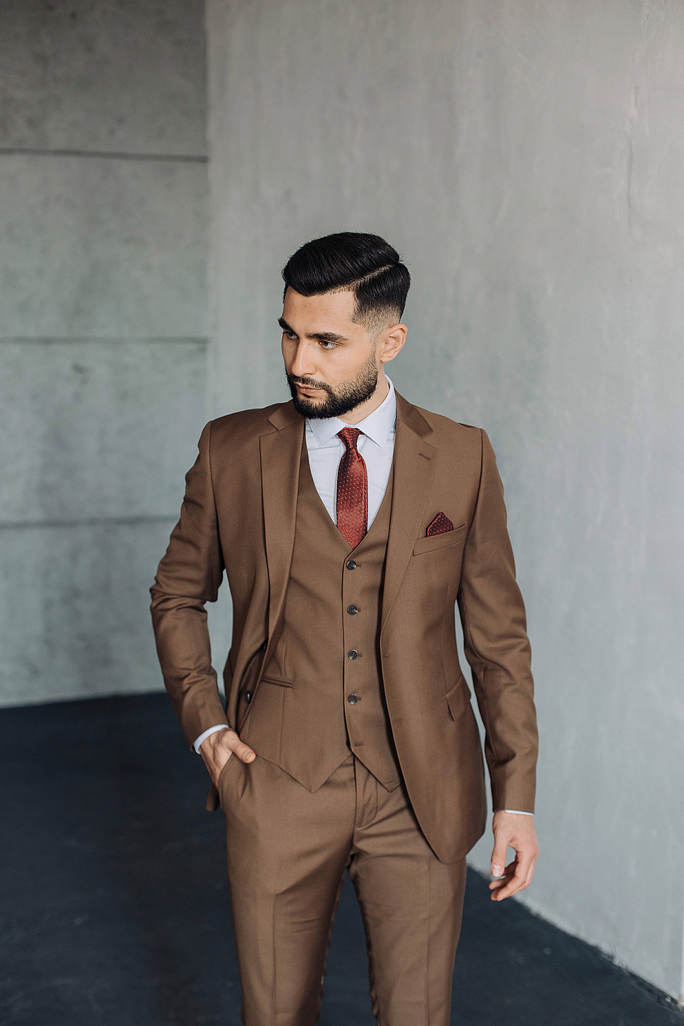 Мужской костюм двойка коричневого цвета в стиле кэжуал