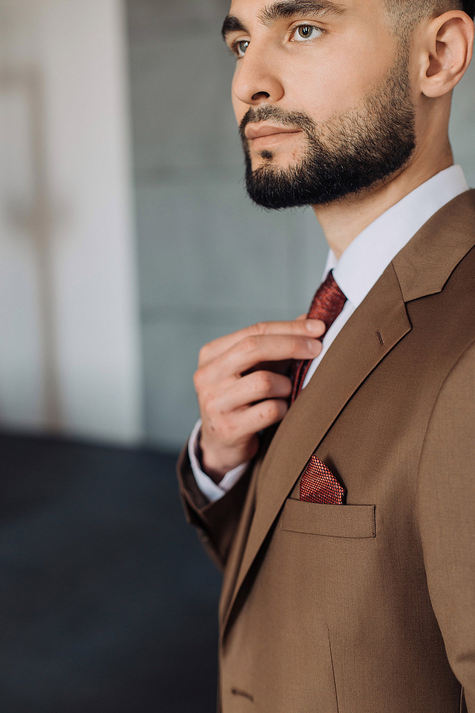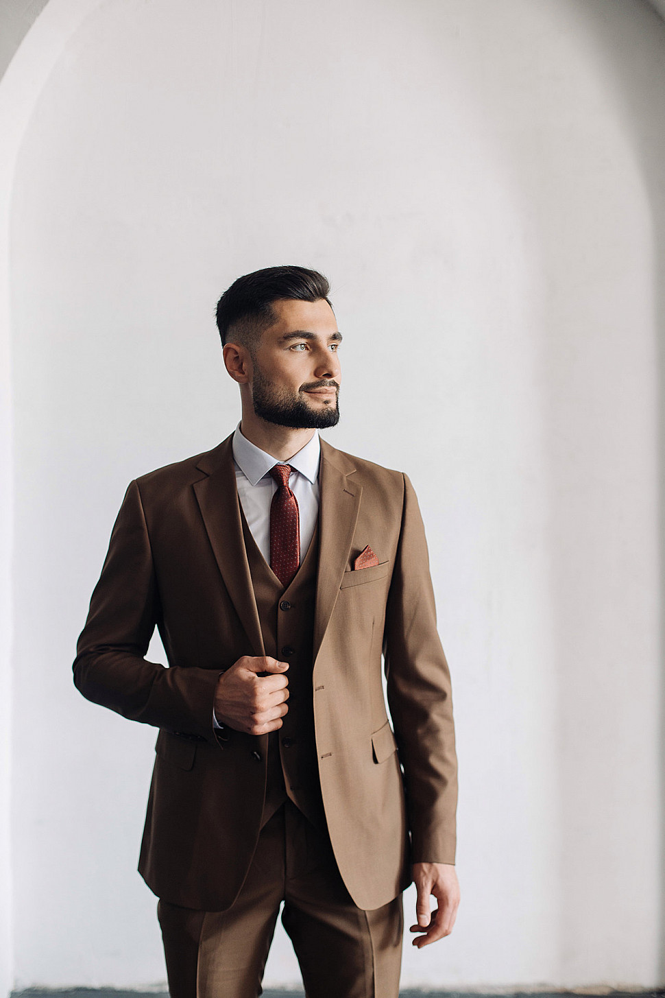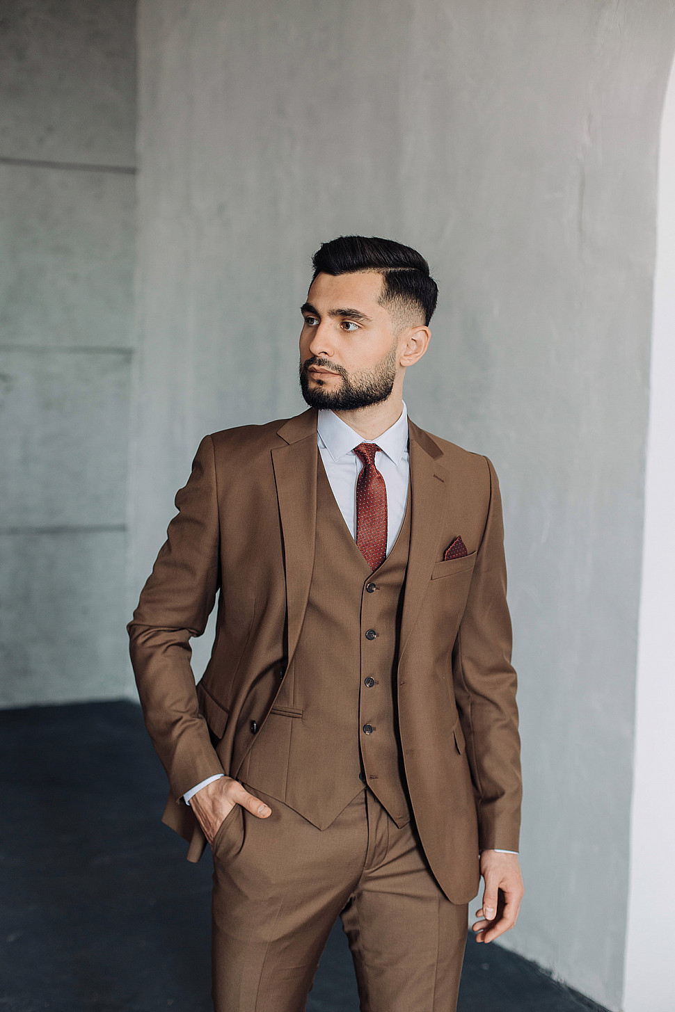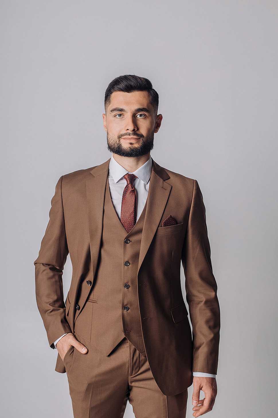 Мужской костюм двойка коричневого цвета в стиле кэжуал