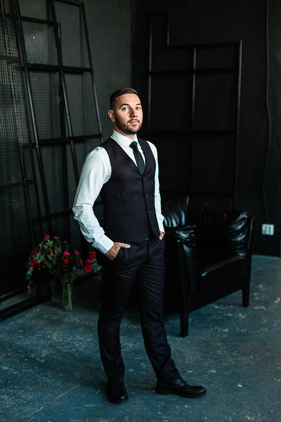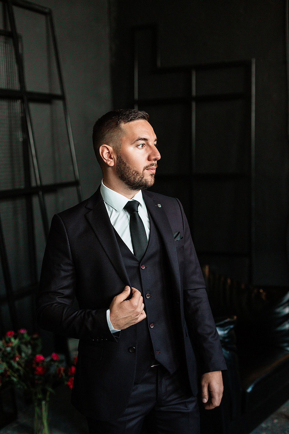 Мужской костюм тройка темно-фиолетовый, классический образ