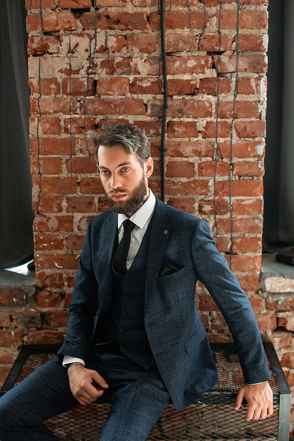 Мужской костюм тройка черного цвета и сноуборд
