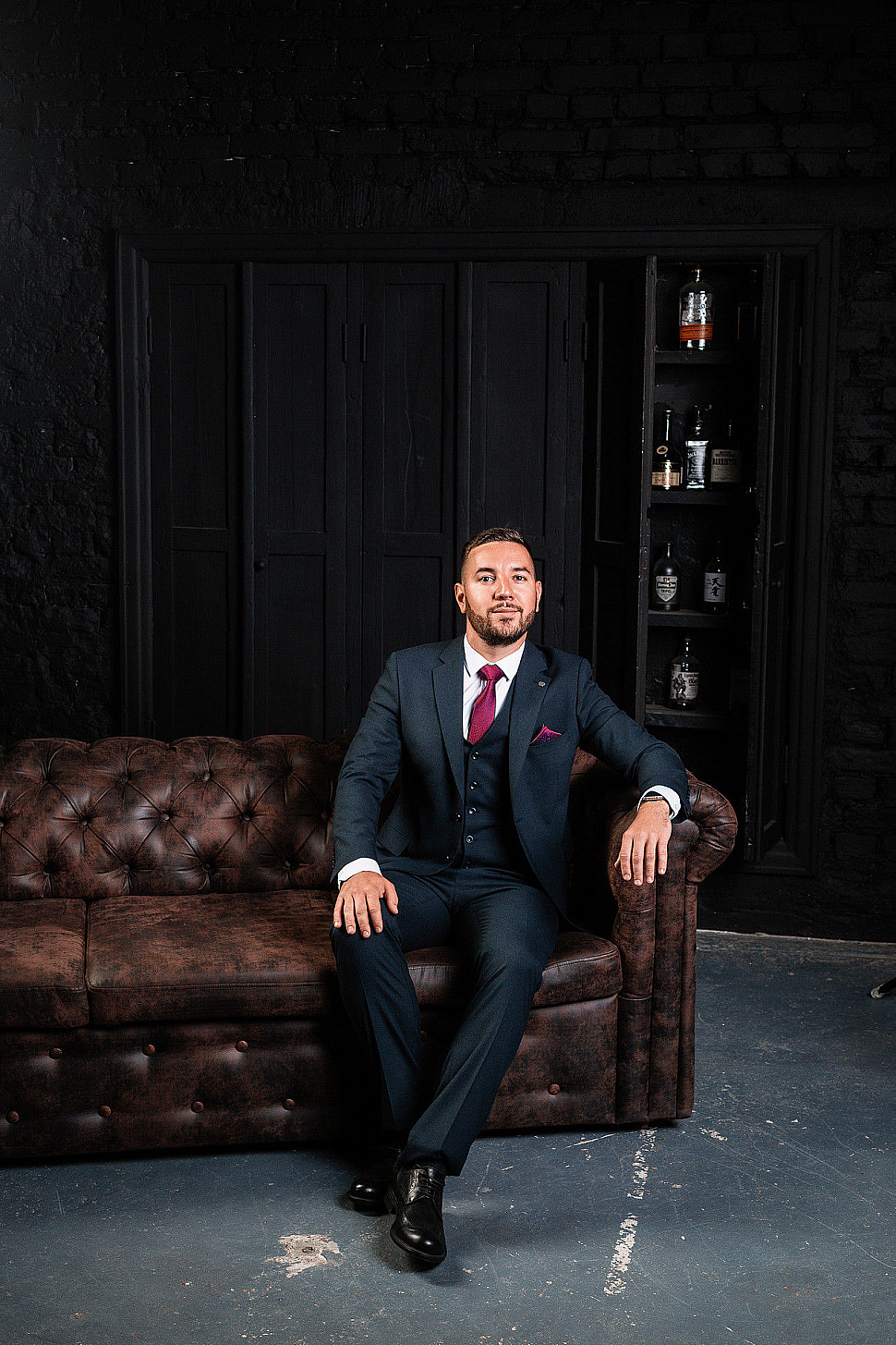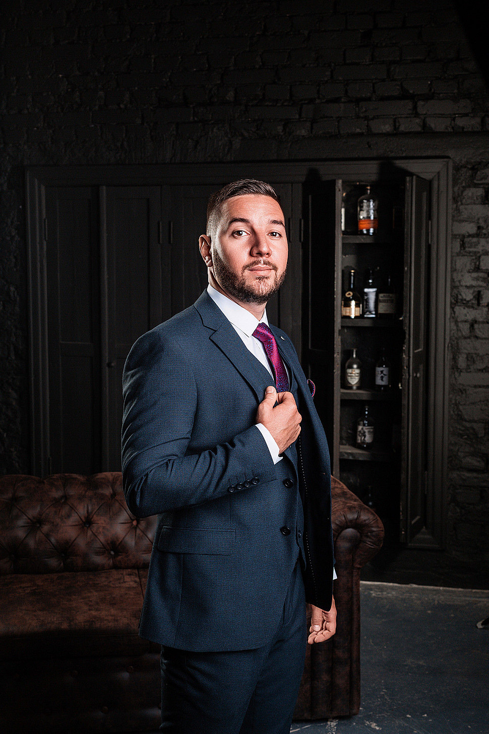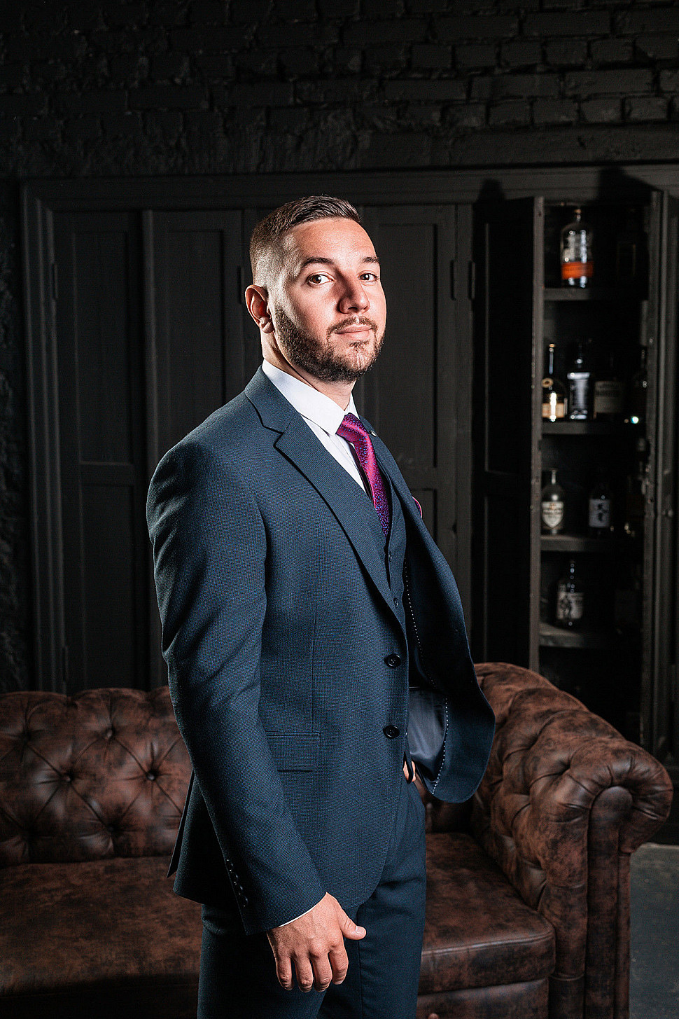 Костюм мужской тройка темно-бордового цвета фактурный